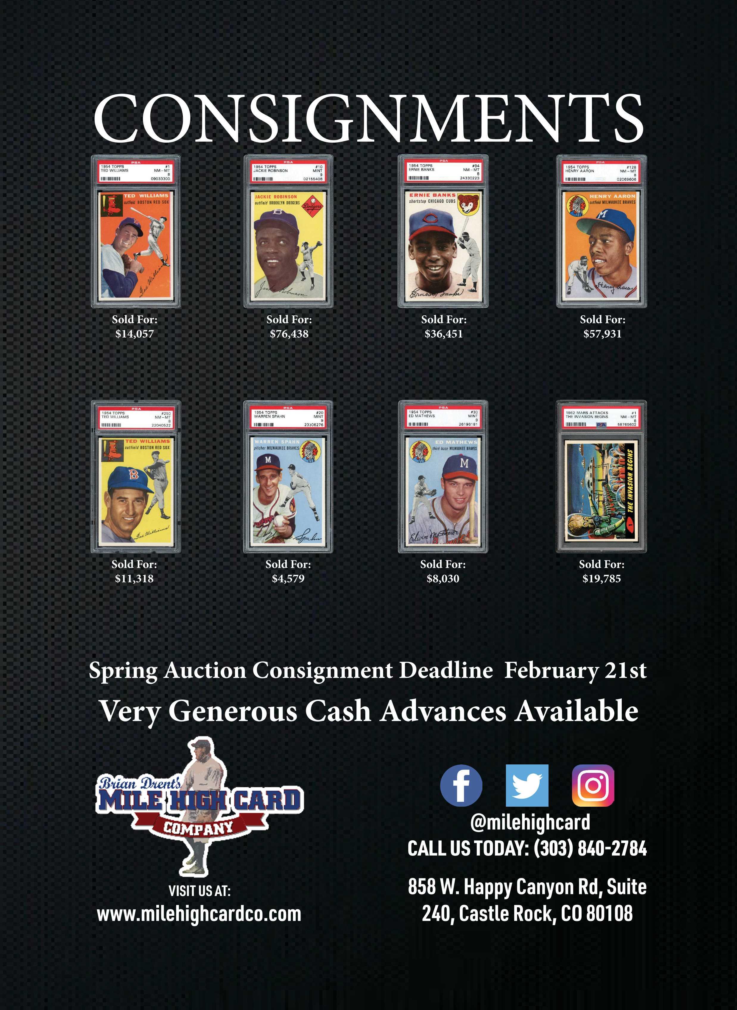 PO Box 430 • Chester, NJ 07930 | Phone: 908-226-9900 or 908-888-2555 www.RobertEdwardAuctions.com Generous Cash Advances Available The most trusted name. The most iconic items. The hobby’s best results. Consign Now to our Next Blockbuster Auction!