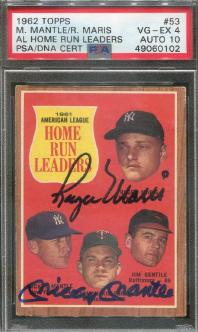 In 1958, card No. 418 of the flagship Topps set featured Mantle and then-Milwaukee Braves icon Hank Aaron with the capitalized print: WORLD SERIES BATTING FOES. It would mark Topps' first World Series card and the only time during their playing days that Mantle and Aaron were featured on a piece of cardboard. Two years later, Topps devoted one card to each of the six World Series games between the Los Angeles Dodgers and