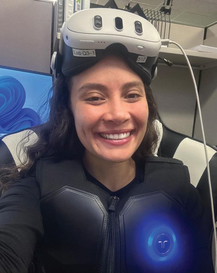 She was impressed by the VAR Lab’s resources, equipment, and engaged student researchers—exactly what she needed to develop more sophisticated VR environments for her work back home. Her goal is to create virtual spaces that replicate the sensory integration clinic experience, making therapy more accessible to families who can’t travel to major cities in Brazil.