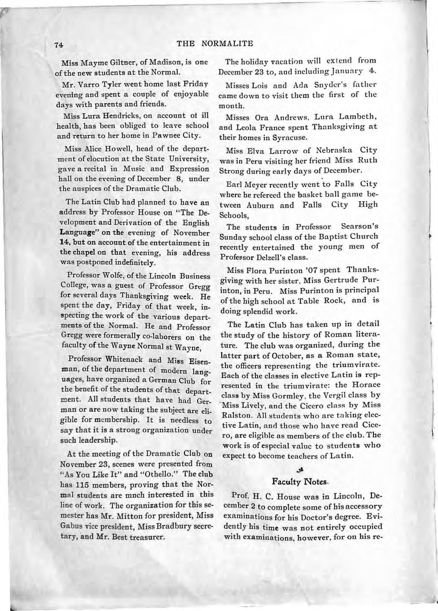 HatTV Reck '06 is at Filley from wltich place h.e reports hi s work plen sn nt Hnd satisfactory.
