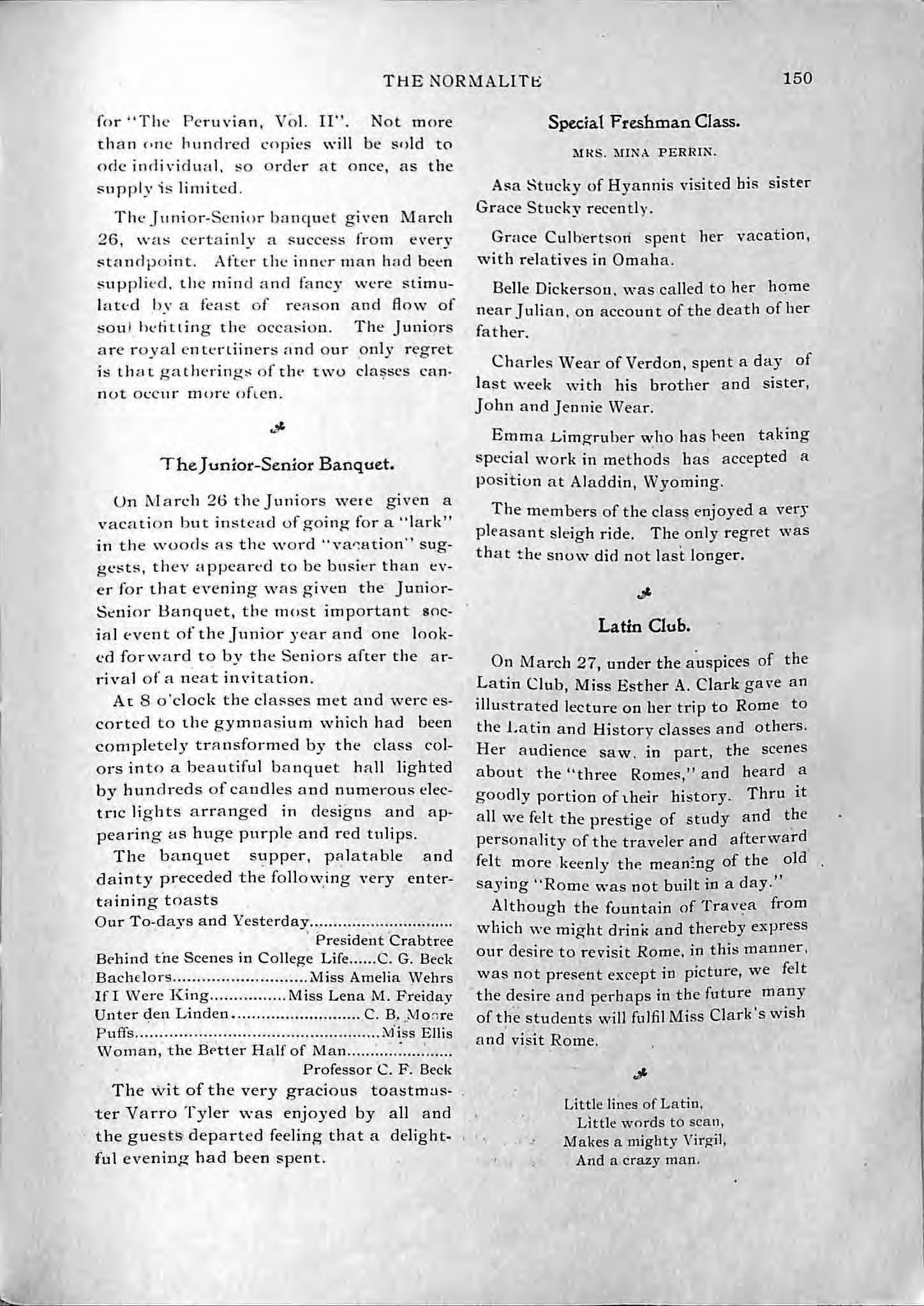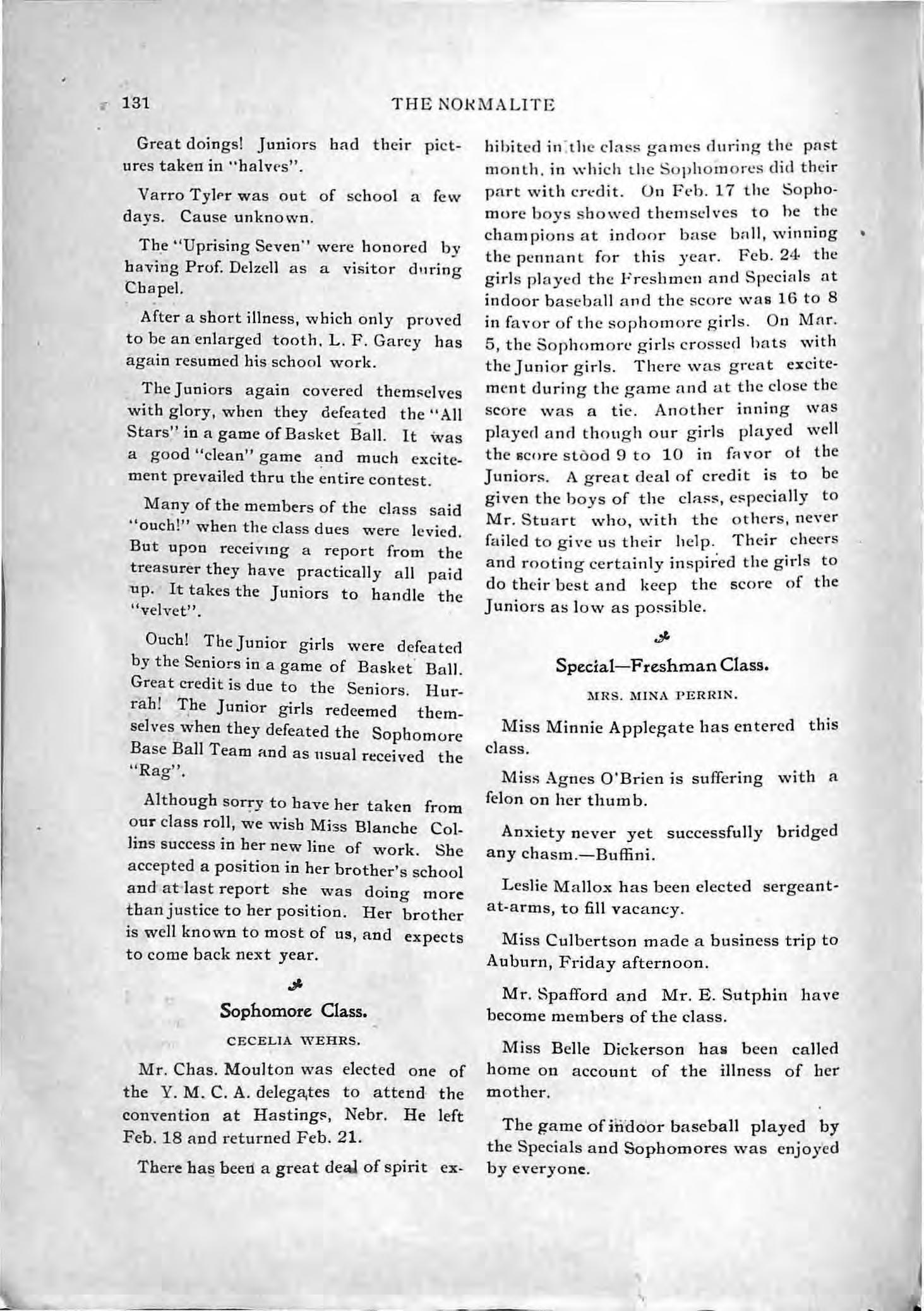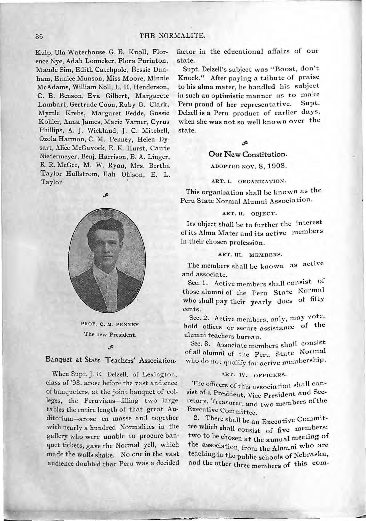 C. E. Reynolds '99 act i ve, a banker at Rising City, w ri tes tba t whi le hi s work bas taken him out of th e te ac hin g pr ofer>sion he ·st ill has a wa rm s pot in his . J1c1a rt for th e dear-o ld No rmal. . ··f !·