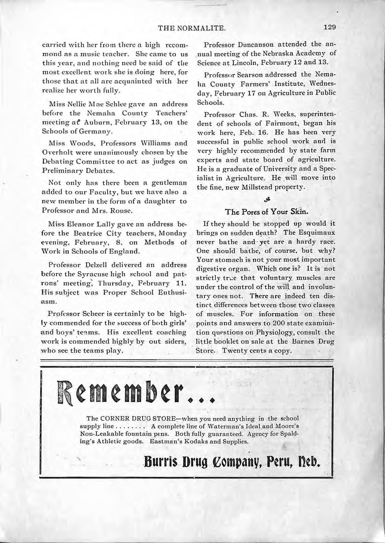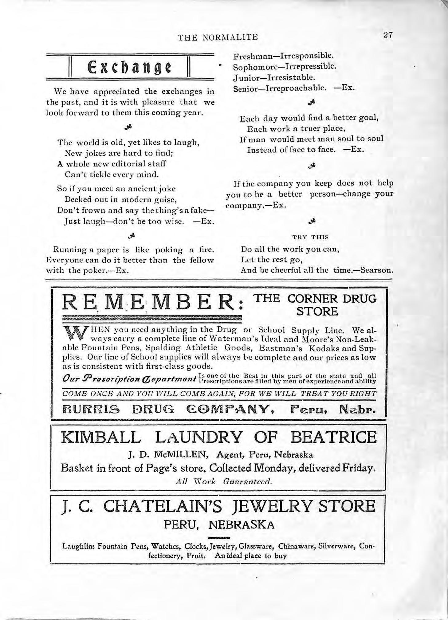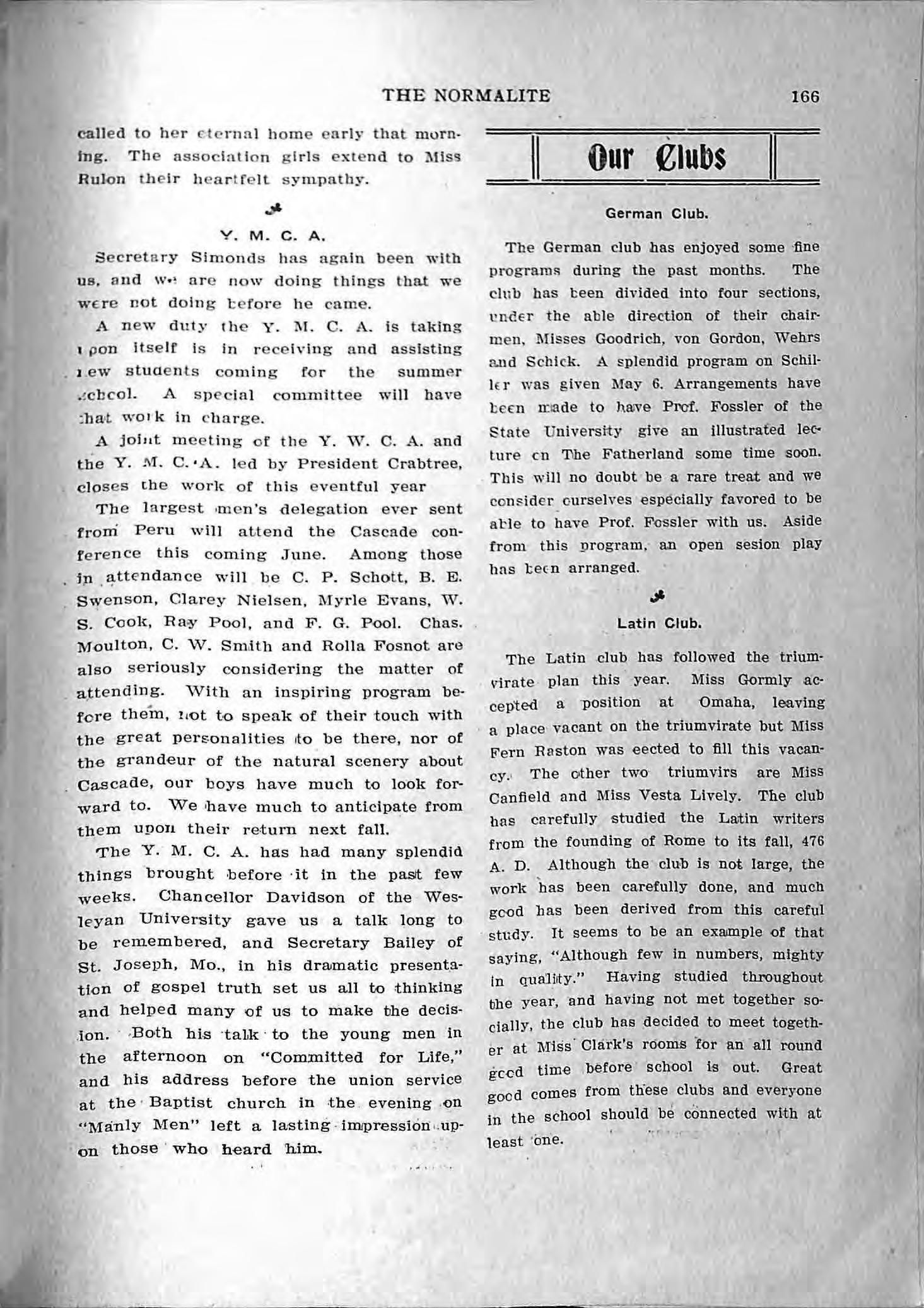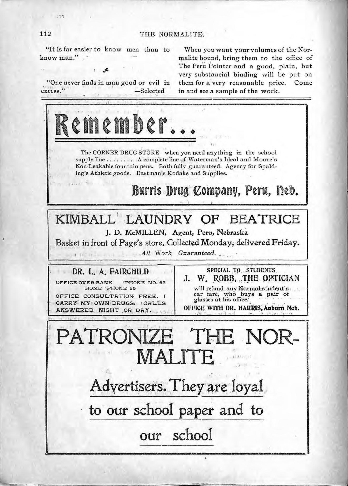 C. E. Reynolds '99 act i ve, a banker at Rising City, w ri tes tba t whi le hi s work bas taken him out of th e te ac hin g pr ofer>sion he ·st ill has a wa rm s pot in his . J1c1a rt for th e dear-o ld No rmal. . ··f !·