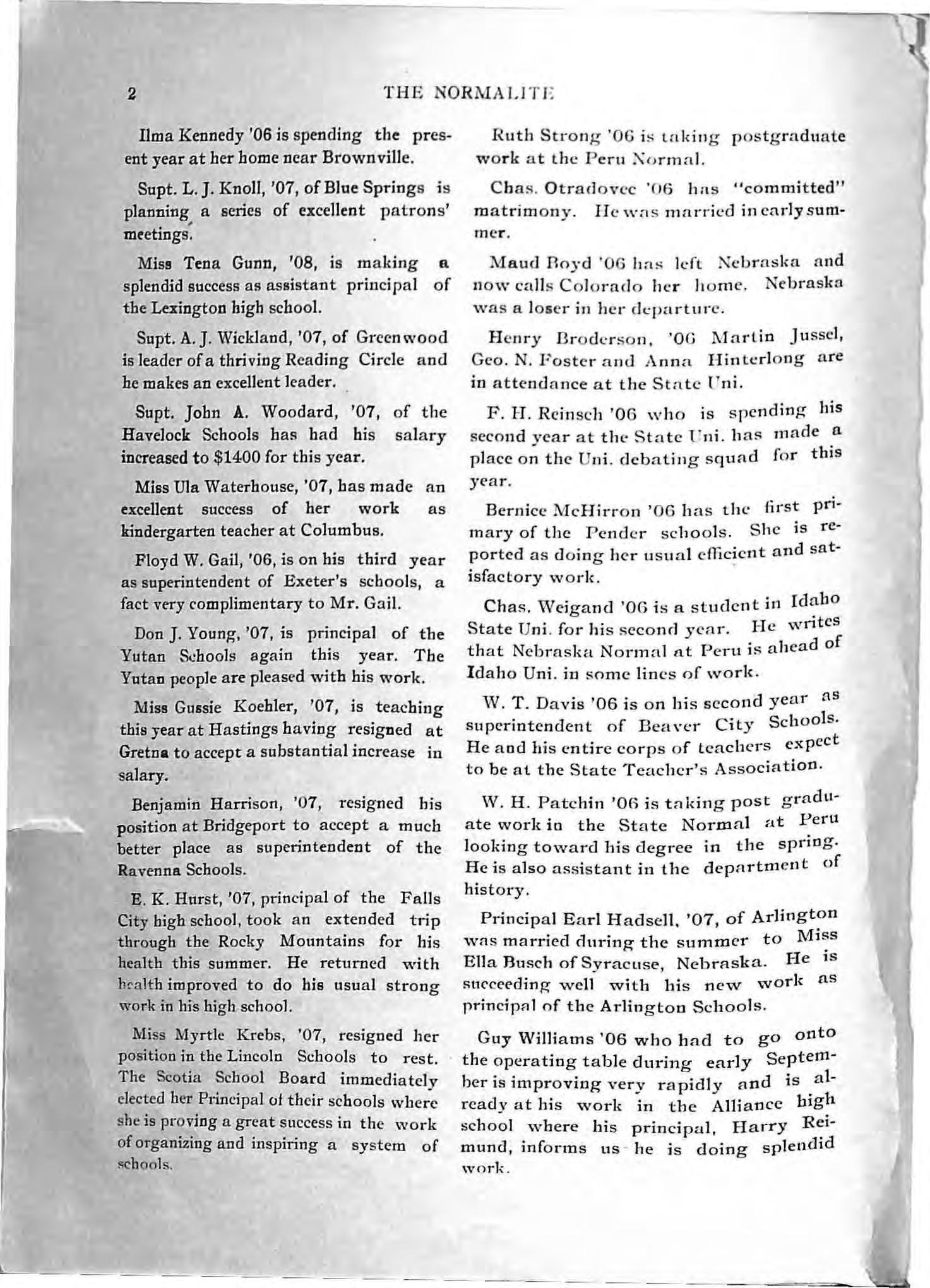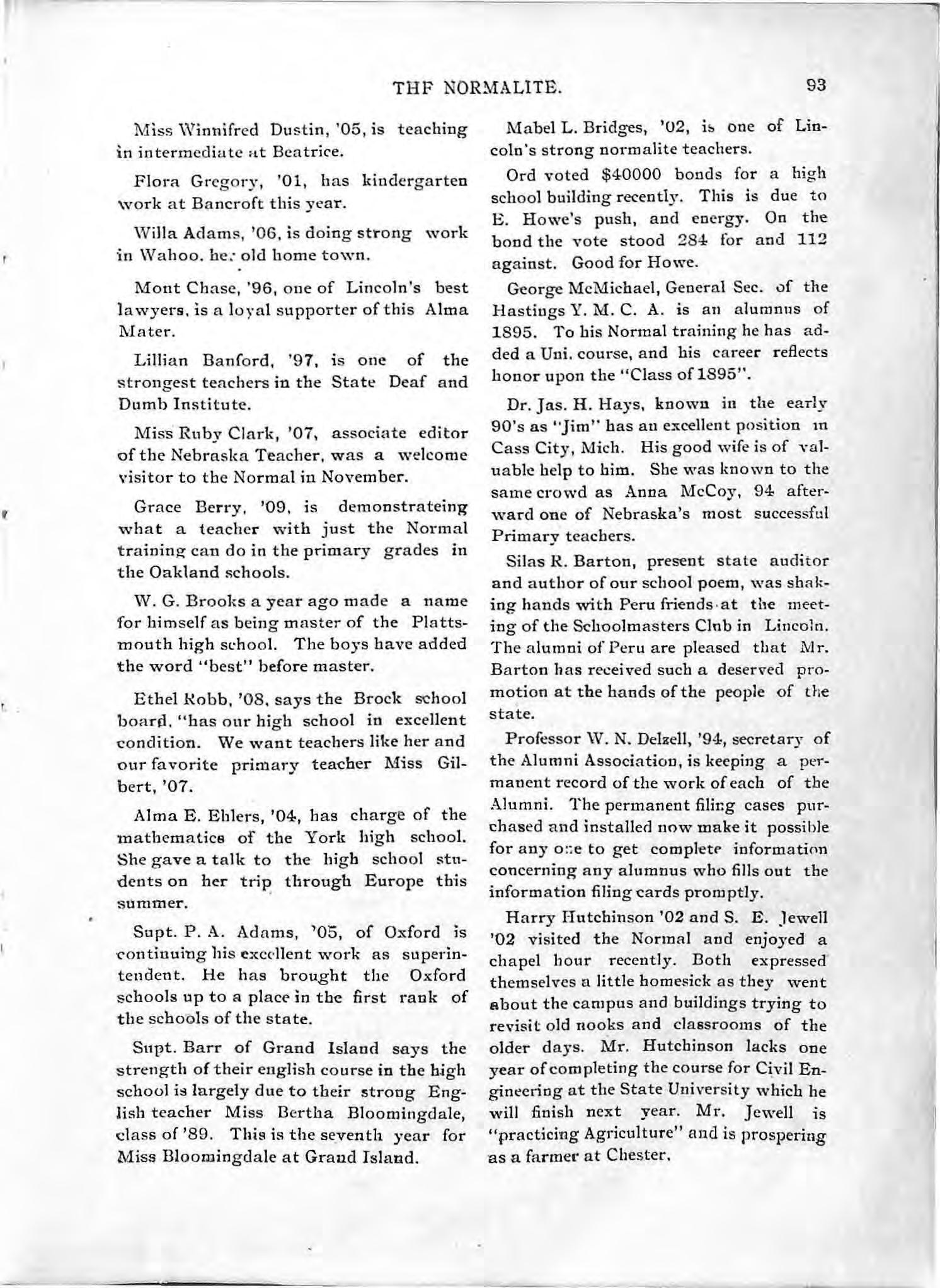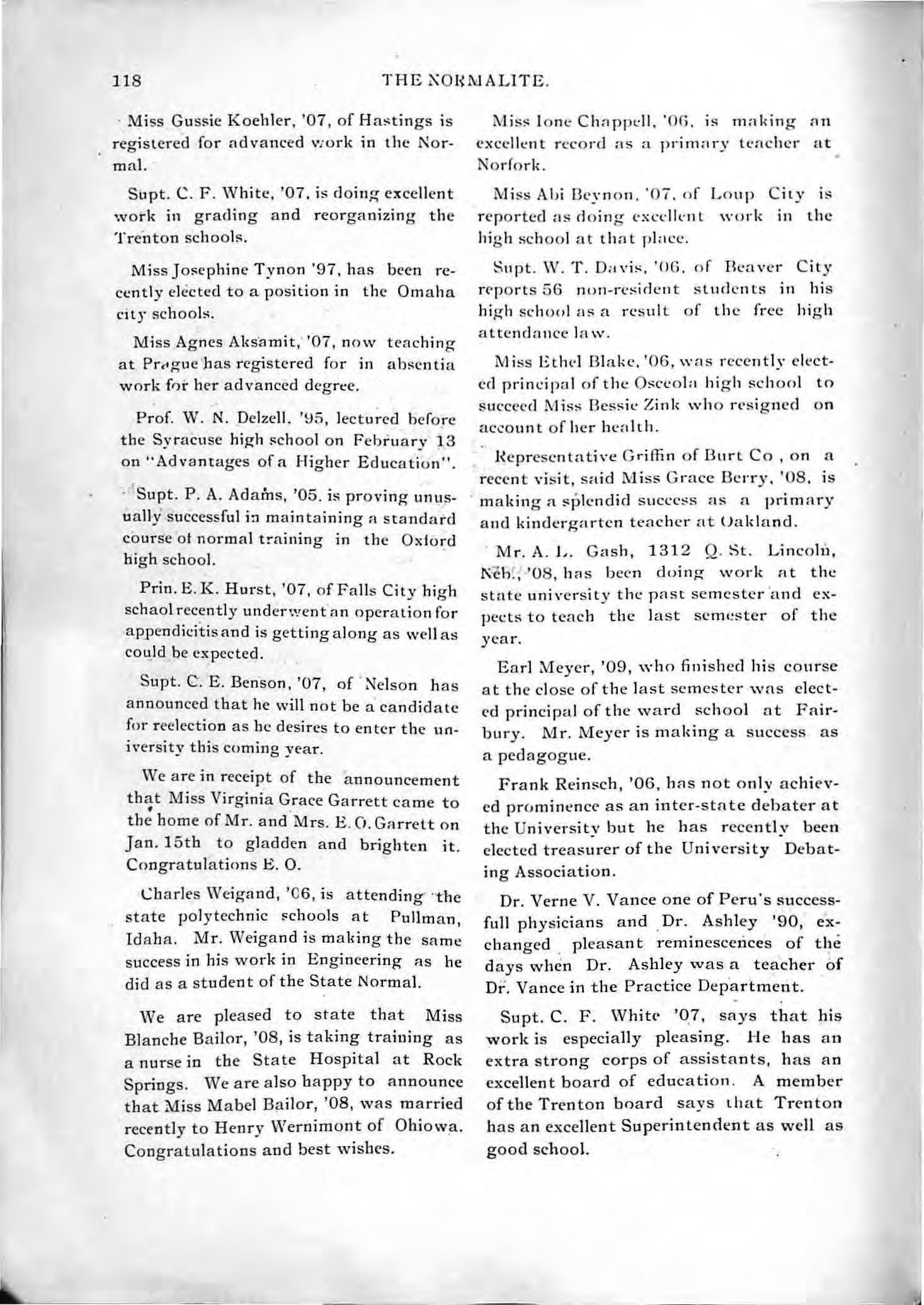 Miss Gussie Koehler, '07, is t eaching this year at Hasting s h aving resi gn ed at Gretna to accept a s ubst antial i ncre as e in salary.