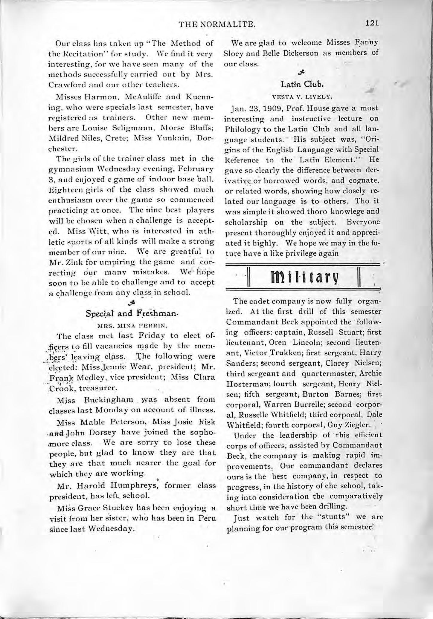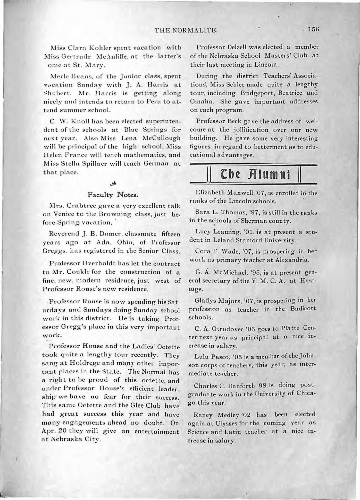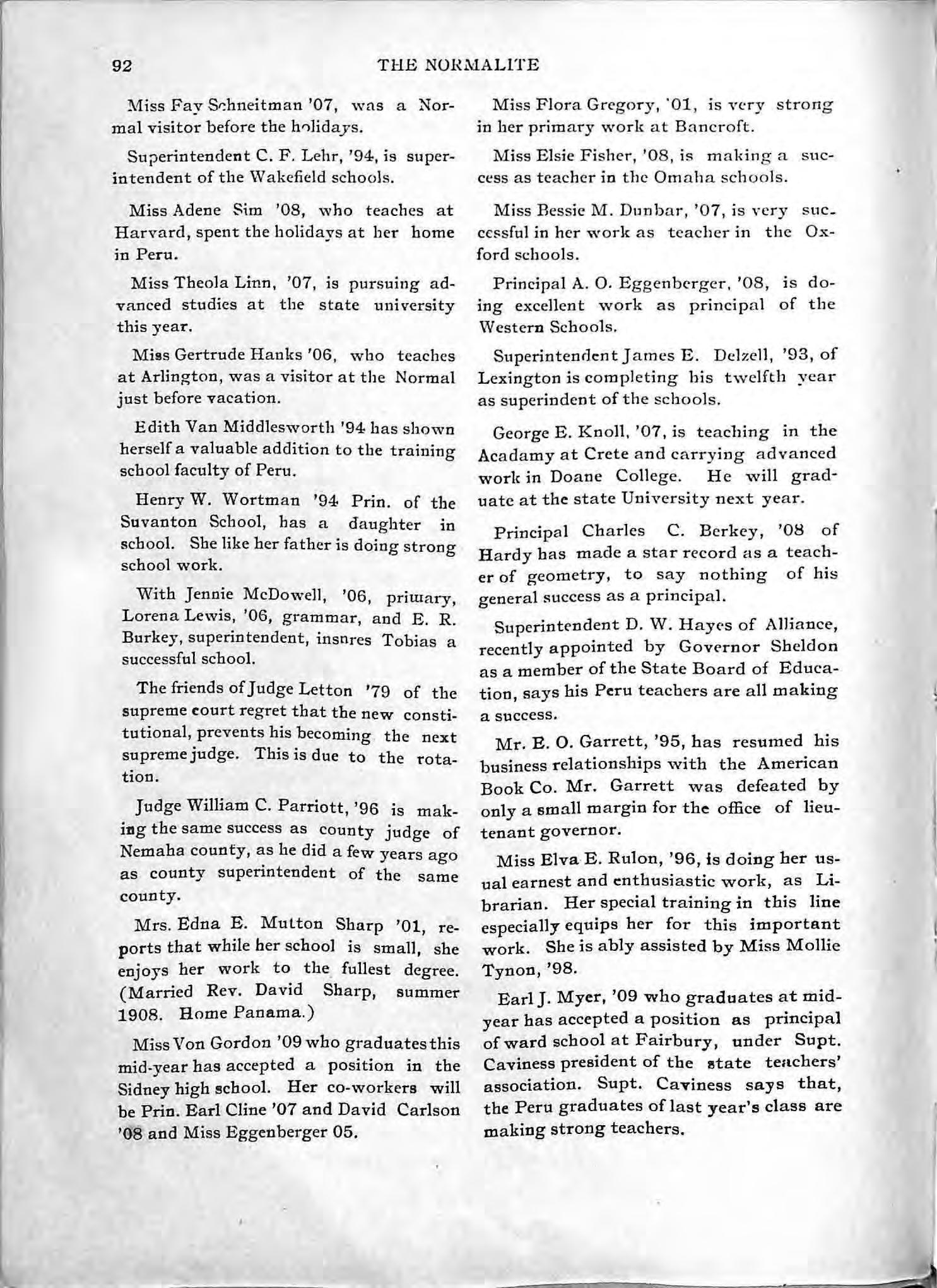 Miss Gussie Koehler, '07, is t eaching this year at Hasting s h aving resi gn ed at Gretna to accept a s ubst antial i ncre as e in salary.