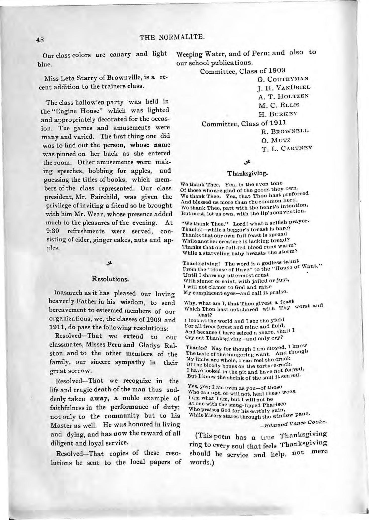 our Father In His Infinite wls· dom hM s een fi t to ca ll to her he avenl y home, th e mother of f'Ur est ee med libra rIan. :Mi ss Rul on, w e, th e s tudents of the Peru Sta te No rmal, pass. th e following reso luti ons:
