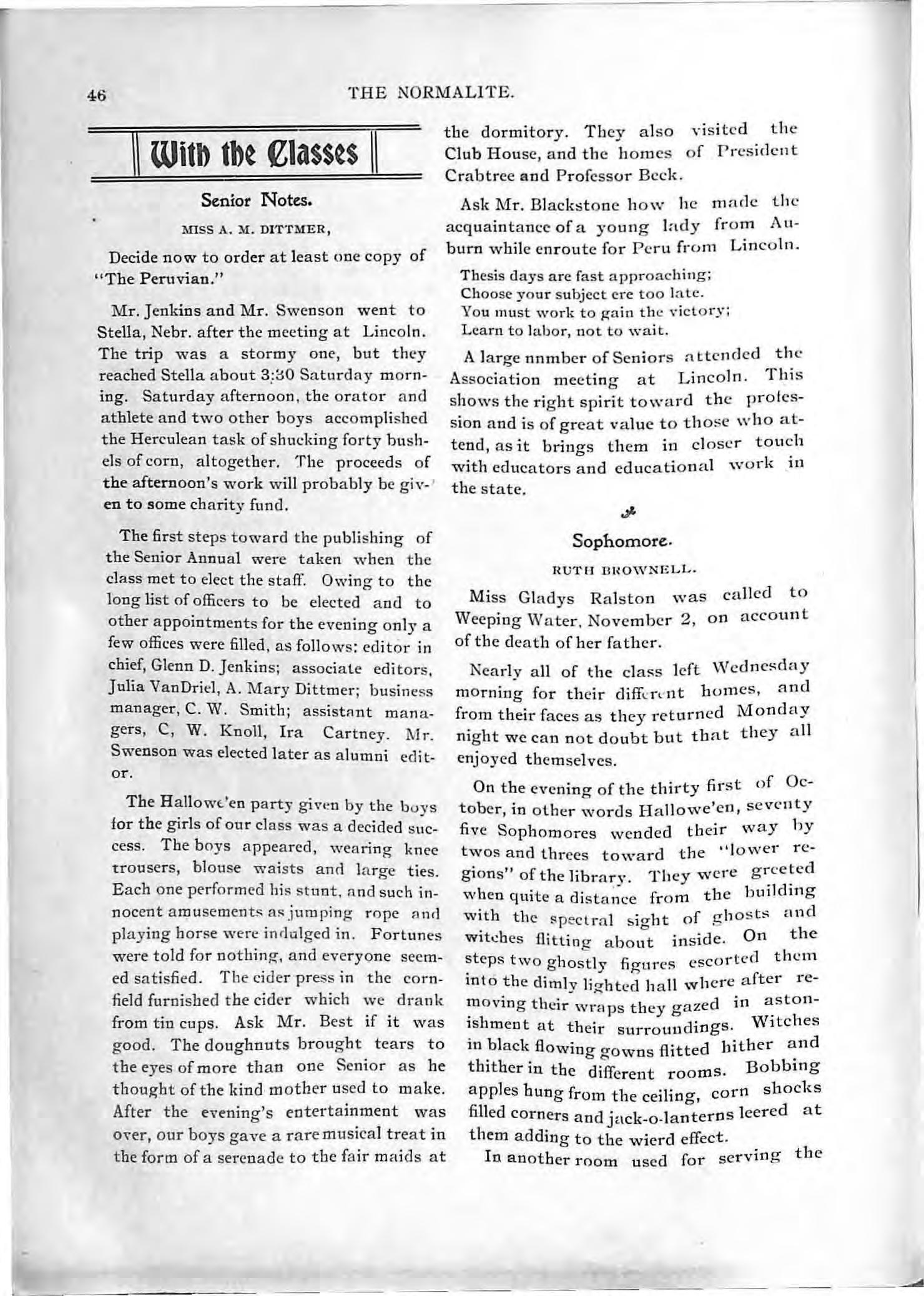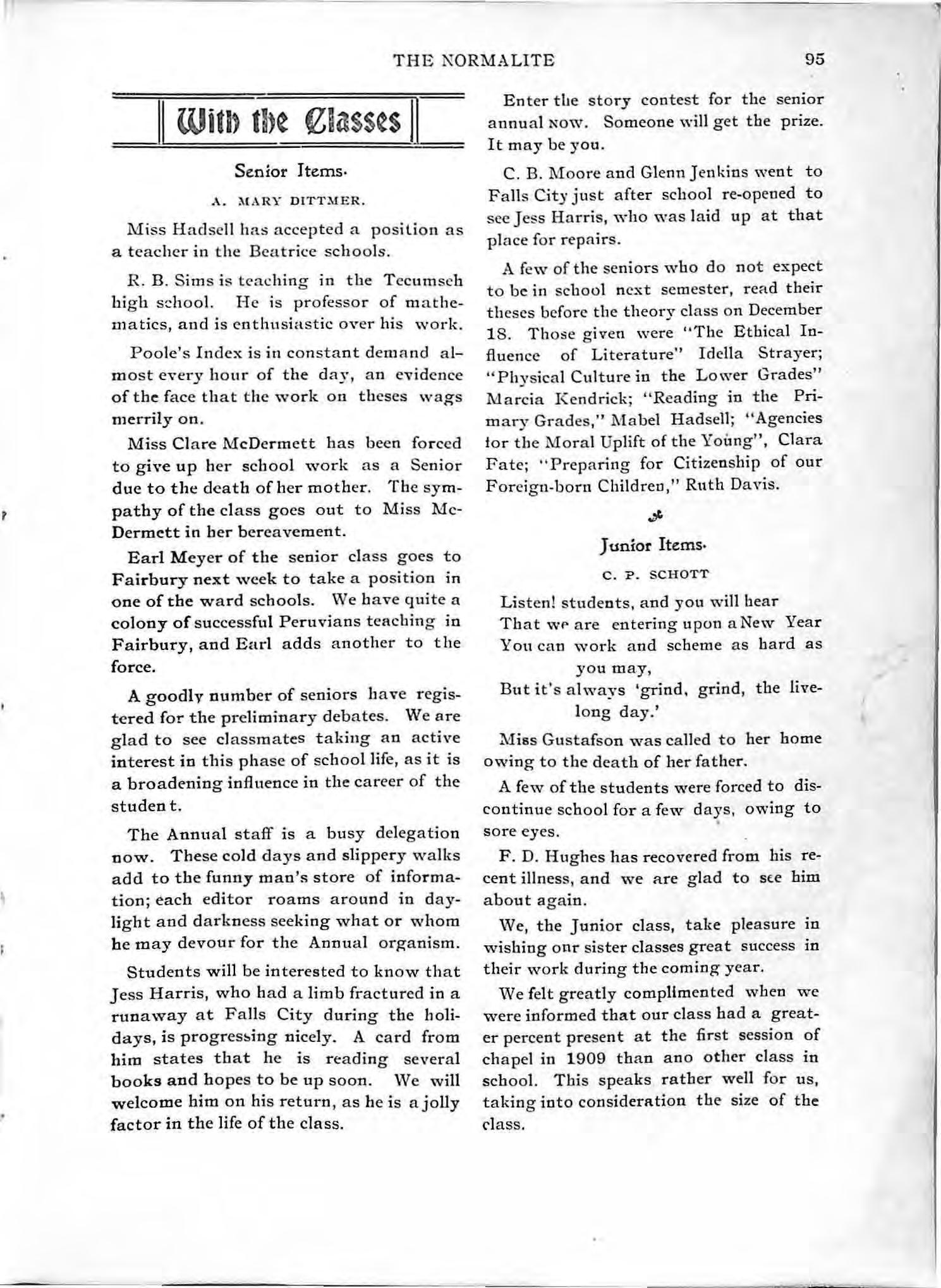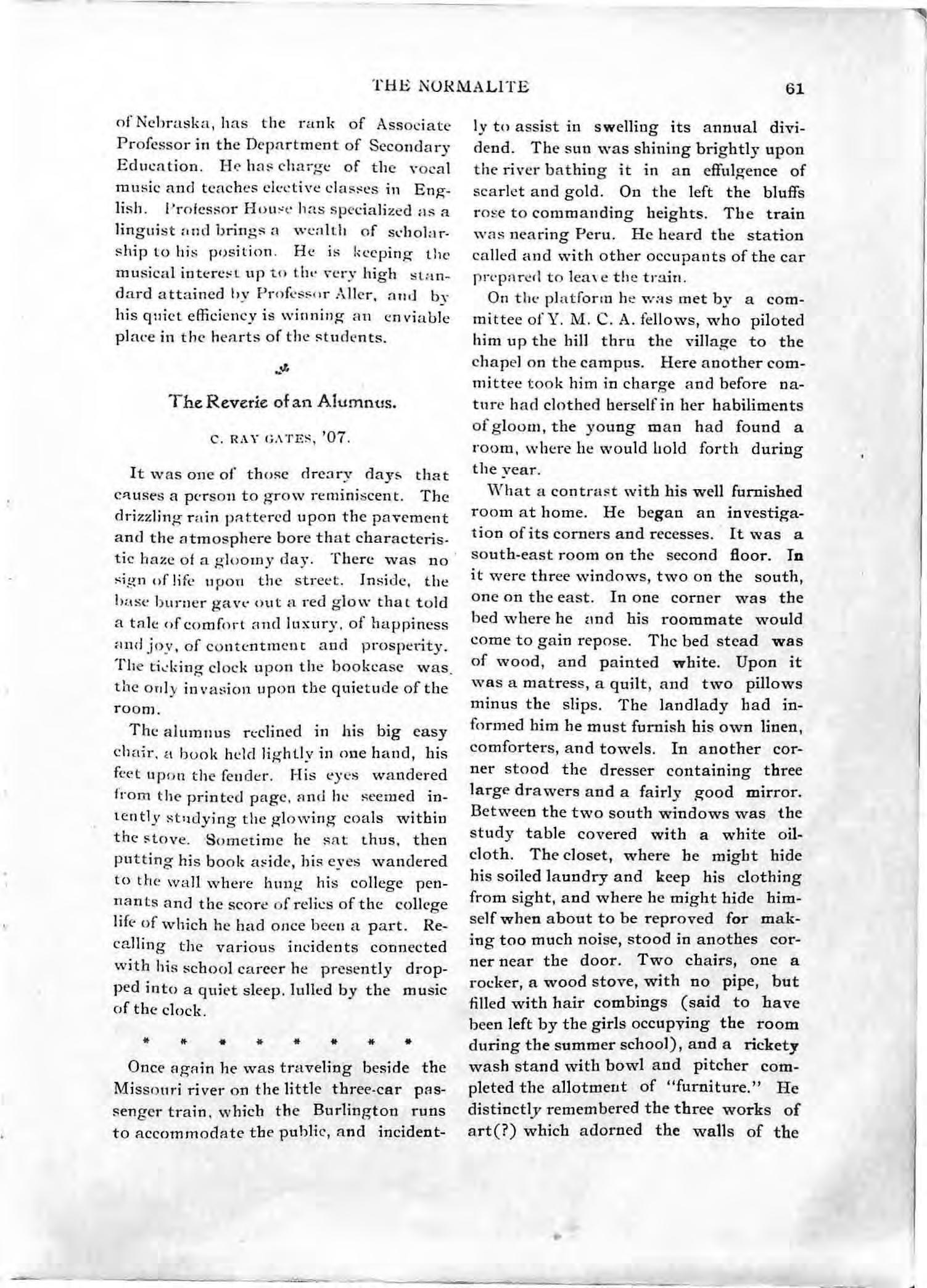 C. Ray Gates '07 prin cipa l of the Nebr as l\a City hi gh sc hool src':ed a hi t bY t akin g his civic cla ss to Lin coln -during th e sess ion of L11 e fo r a f ew pr acti ca l l ess on s. J;Ie is u0w runnin g a se ri es of inter -c lass ha1> e> hnll g am es whi ch are f oste ri ng w)"lol es om e class s pi r it.