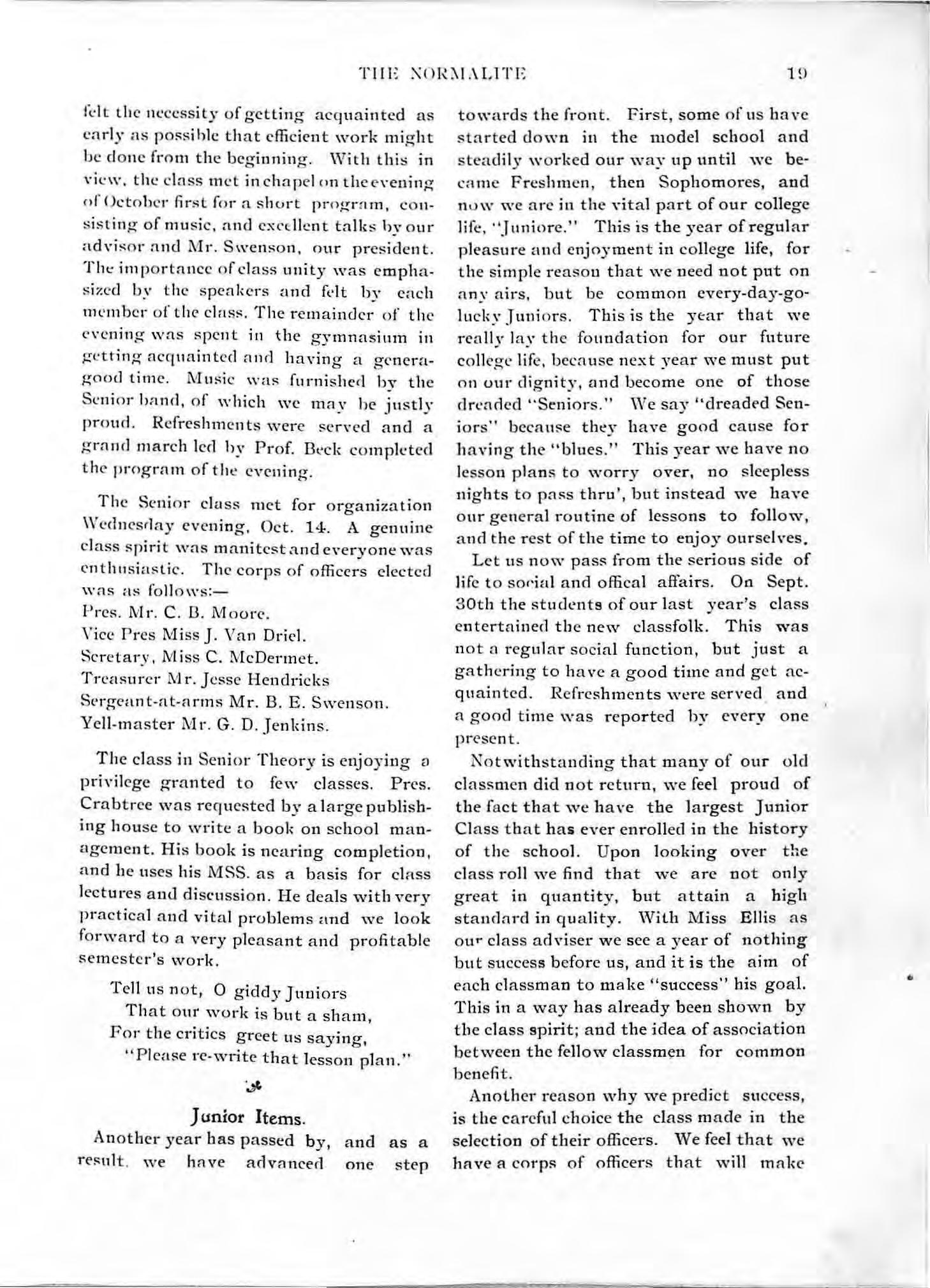 Su pt.J C. Mitchell o fFri e nd , a memb er of the Class of 1 907, has ma de an enviable record a supervisor and educator He ba s 23 members in his No rm al Training class thi s year. Hi s Hi gh School has n ea rl y two hundred pupil s enro lle d.