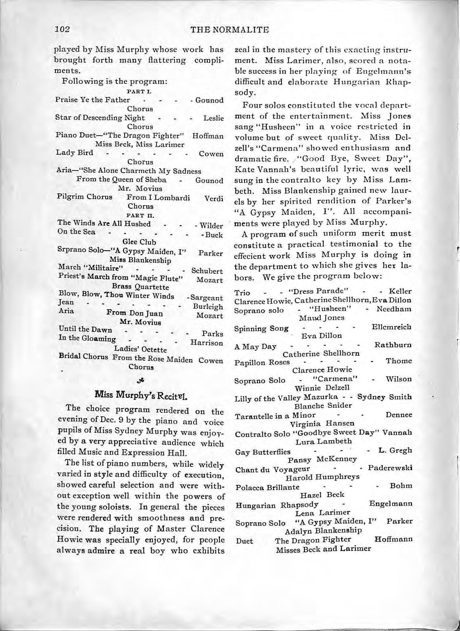 Th e dc l' pf st< t sohO-w · preva iled ··at the' No rmal.when it ,.\\las learned tliat ' M'tss Sydney··M u'r phy , in s tructorl'in the depat;tment of mu.fli c, 'had. passed a,way a( Methodist ho spit al in On:i!!lha ,on. May aft er an illness of.only 1 The wor,d ca me as a ;j hock for it was Mis s \ I: <1