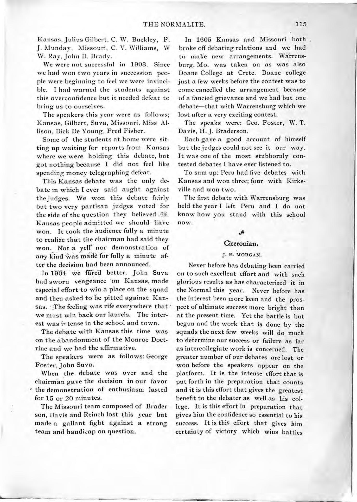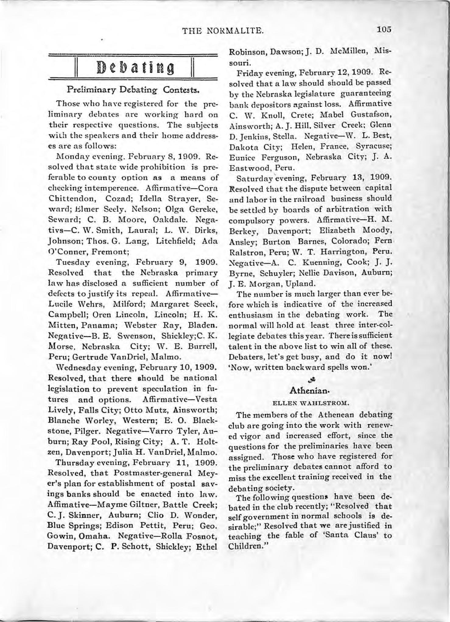 F. H. Re in sch '06 who is spe ndin g his s eco nd Yea r at t he St:t tc l' ni lws m ncle 11 pl ace th e U ni . deba tin g s qu ad for this yC' a r.