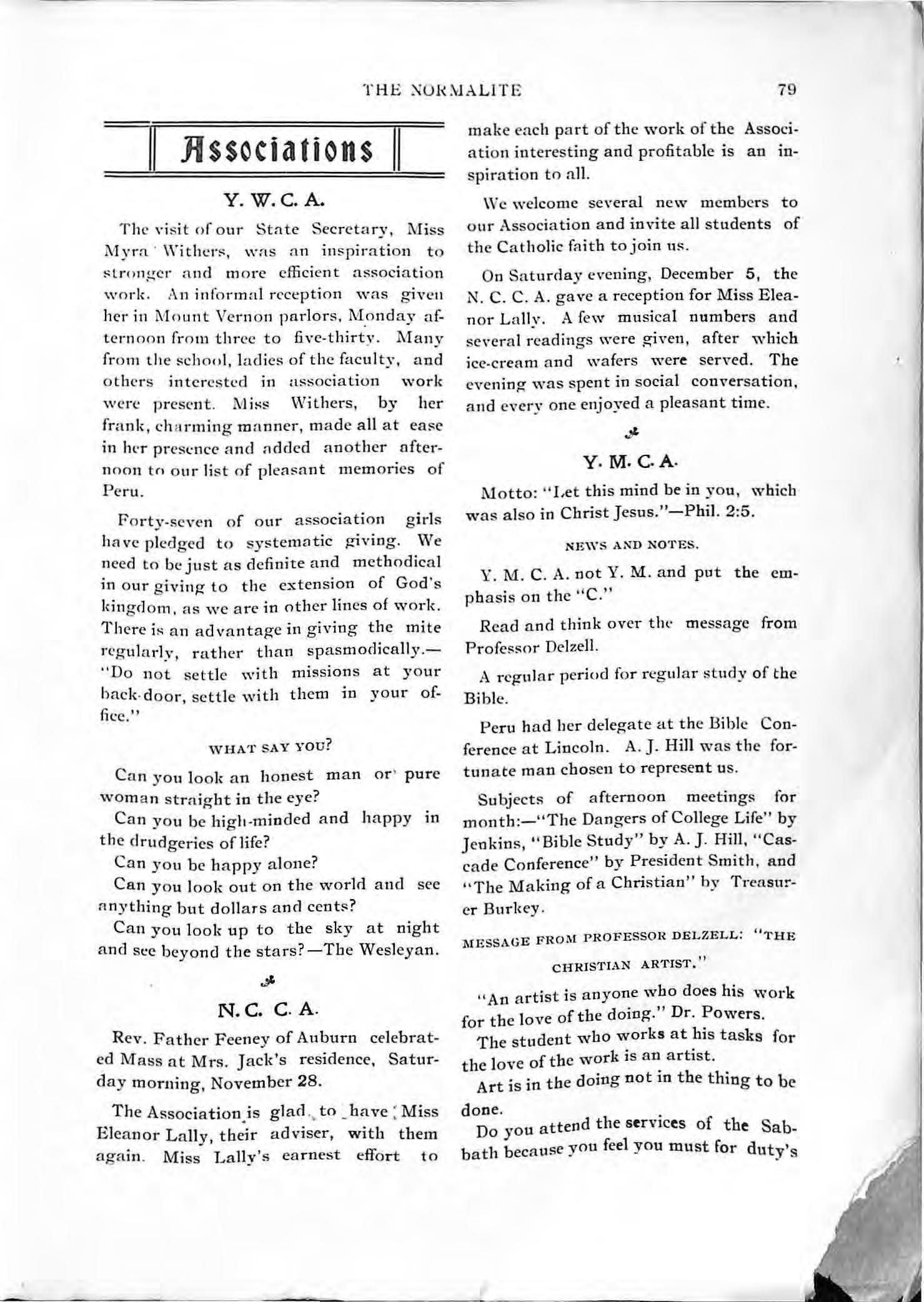 W. H. Patc hin 'O f'i is p ost gra duate wo rk io th e State No rm al at .Peru loo ki ng t ow ar·d hi s deg r·ce in th e spr·io g. He is al so as sista nt in the dep a rtm e nt of hi story.