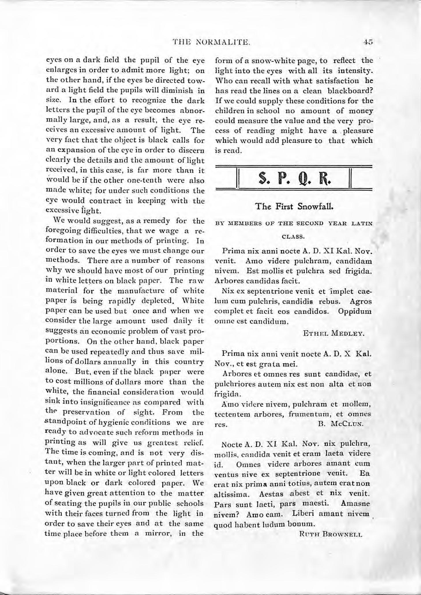 T he s tud nts or th e ::-; orrnn l ob se rv ed l\fotb e rs' d ay . S und n:r. :\ lay 9. by we aring wh ite c arn a ti ons. Pos tnl c ar ds to be m ail ed to the ir m oth ers, we re dis tri bu te d among th e stude nt s on Friday mo rn ing prece di ng :'\ !o th ers' d ny The poe m, and Per u," which wns p ri nted on tbe ca rd s, mad e them esp ec ia ll y appr op riate fo r th e oc casio n.