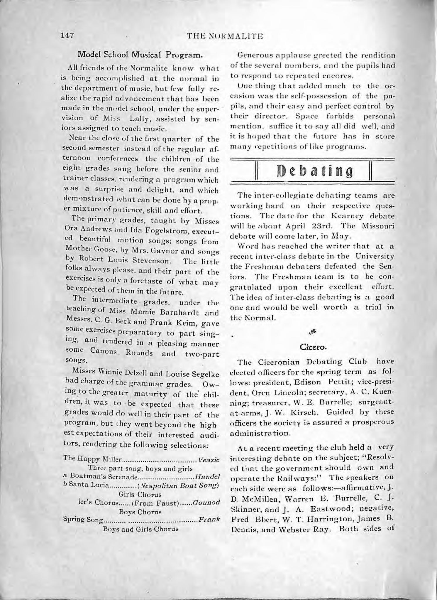 Priu. Earl Cline, '07, of Sidney h as m ade an enviable record as a debating coa ch in western Nebra ska. Mr . Cline ha s also proved a keen, worthy lea der in educational matters generall y.