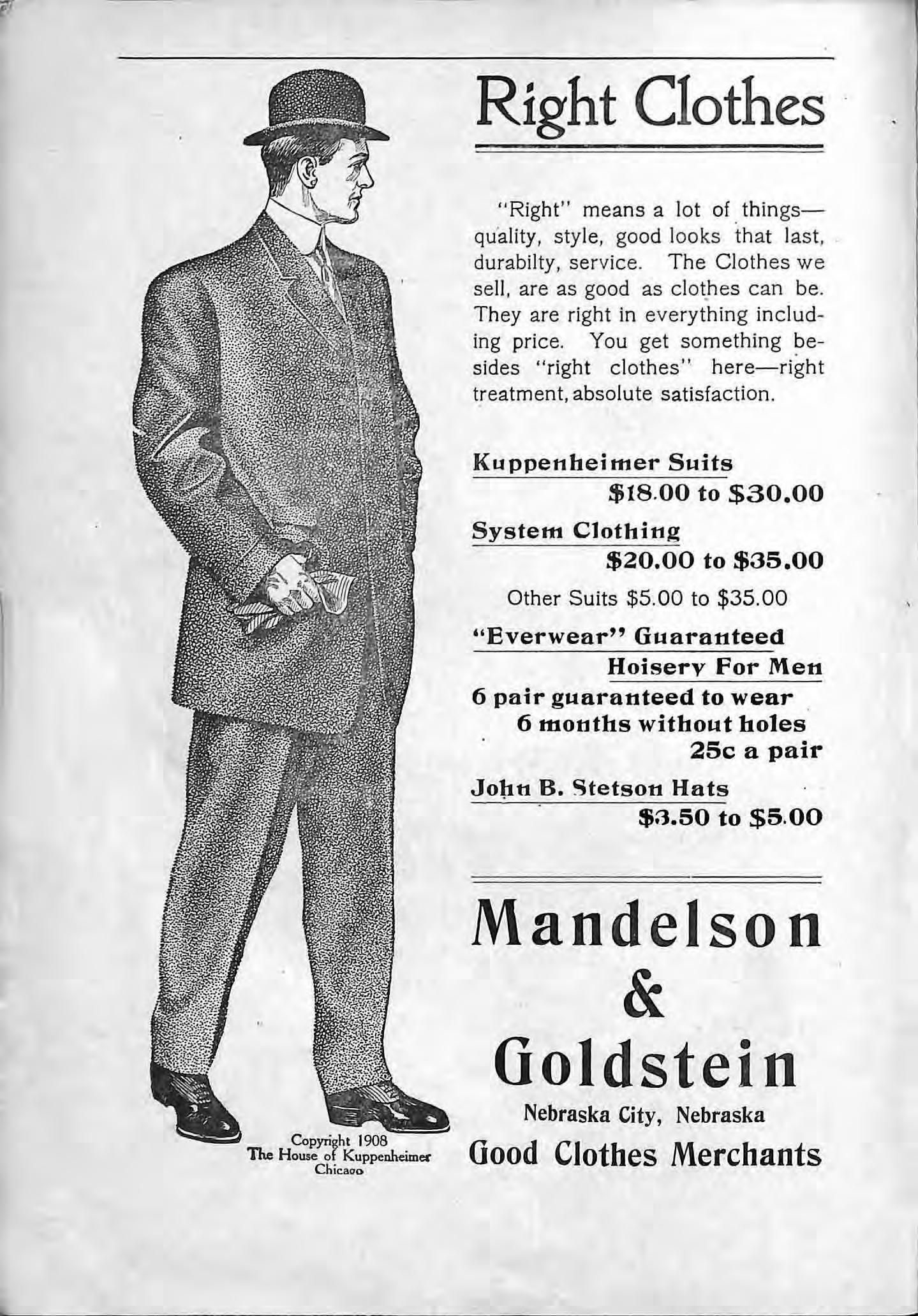 "Rig ht " means a lot of thin gsqu'ality , sty le , good l ooks that l ast, durabilty, service. The Cl othes we sell , are as good as cl othe s can be. They are right in eve ry th ing in cludin g price . You get so me thing sides "right cl oth es " here-right treatment , absolute satisf act ion.
