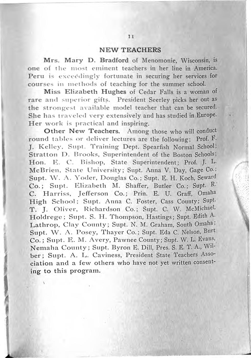 Date for Entering. Railroad Connections. II teachers a nd . tud nt at· a I 1 to m toP ru [onday, June 7- Ex tt· a coach s ' ill b pr id d on all train reaching e ru. i\ pe cial lt·ain \\ill on th at da te lea' e Omaha at 4=45 ov c 1· the D uelingtol1 for P ru. Tho e iri the northern a nd no 1·thcas te n1 paet of th e tate will easily make this connection .. Sp ecial pt·ovi s ion will be made for those reaching Lincoln before 2 :45 on the Nebraska City-Peru train leaving Lincoln at 2 :45: Students on the ]'viis ouri Pacific and branch lines make good connections for Peru at Auburn and Ne braska City. Students in near ly all parts of the state will find it possible to reach Peru Monday evening. Come