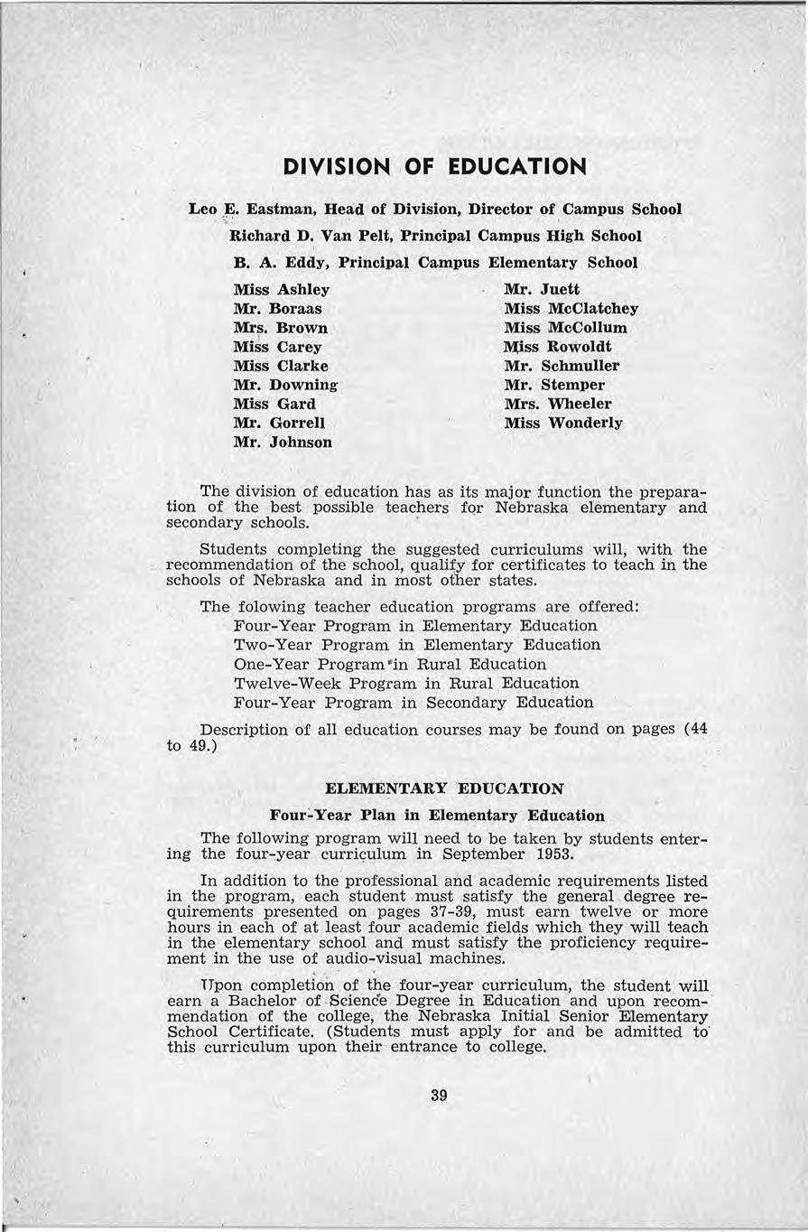 1867 VOLUME XXXIX CATALOG NUMBER 1953-54 MARCH 1953 1953 NO 1 Entered as second class matter August 27, 1936 , at the Post Office of Peru, Nebraska, under Act of August 24, 1912 Issued six times yearly in January, March , April, May, August and · October