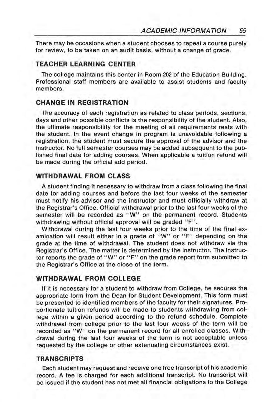 This catalog contains official information for the academic year 1984- 85. The College reserves the right to repeal , change, or amend rules , regulations , tuition and fees; and may withdraw , add to , or modify the courses listed herein