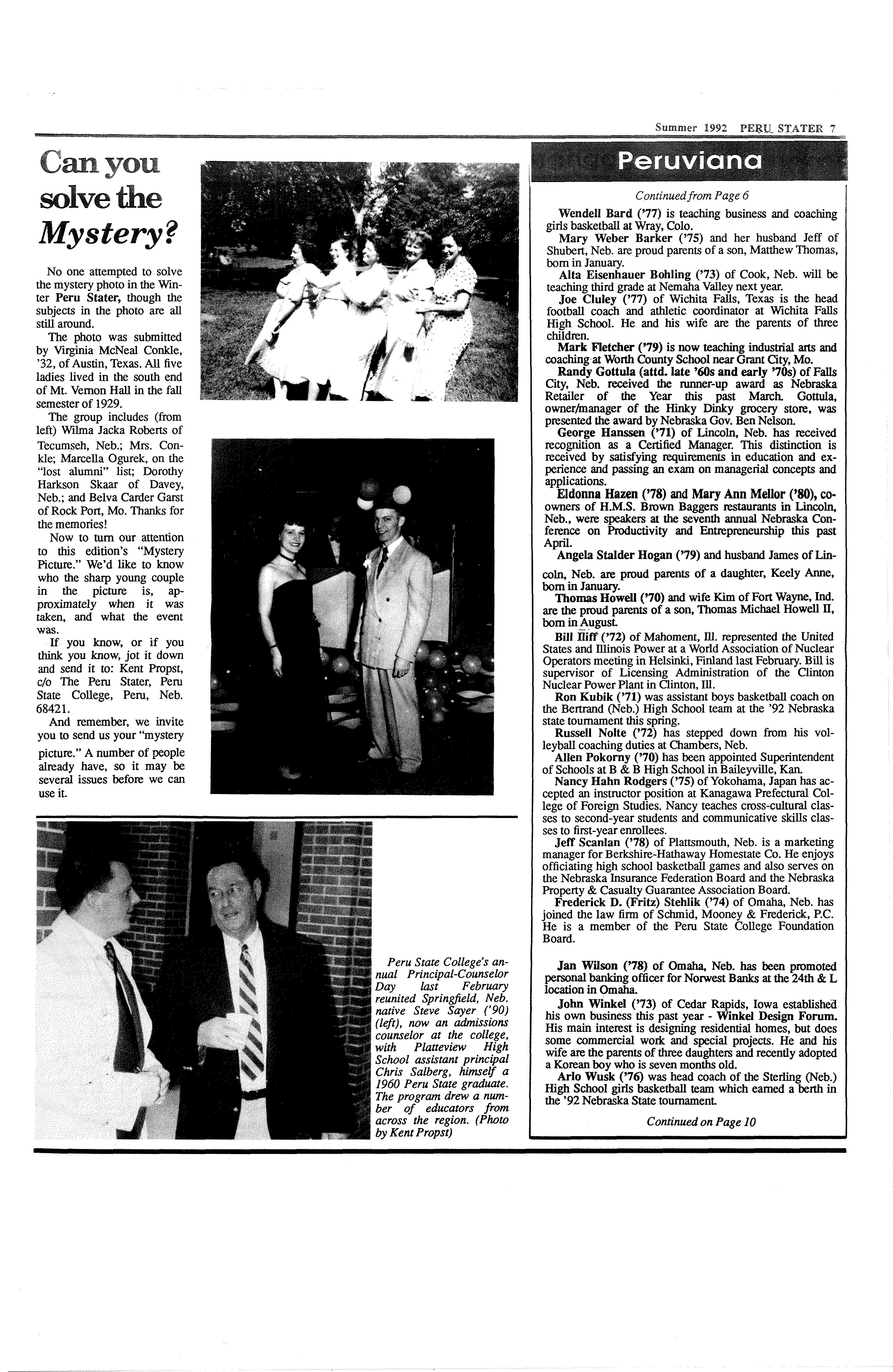 Stater is published by Peru State College with the support of the Peru State College Foundation. Send comments, news