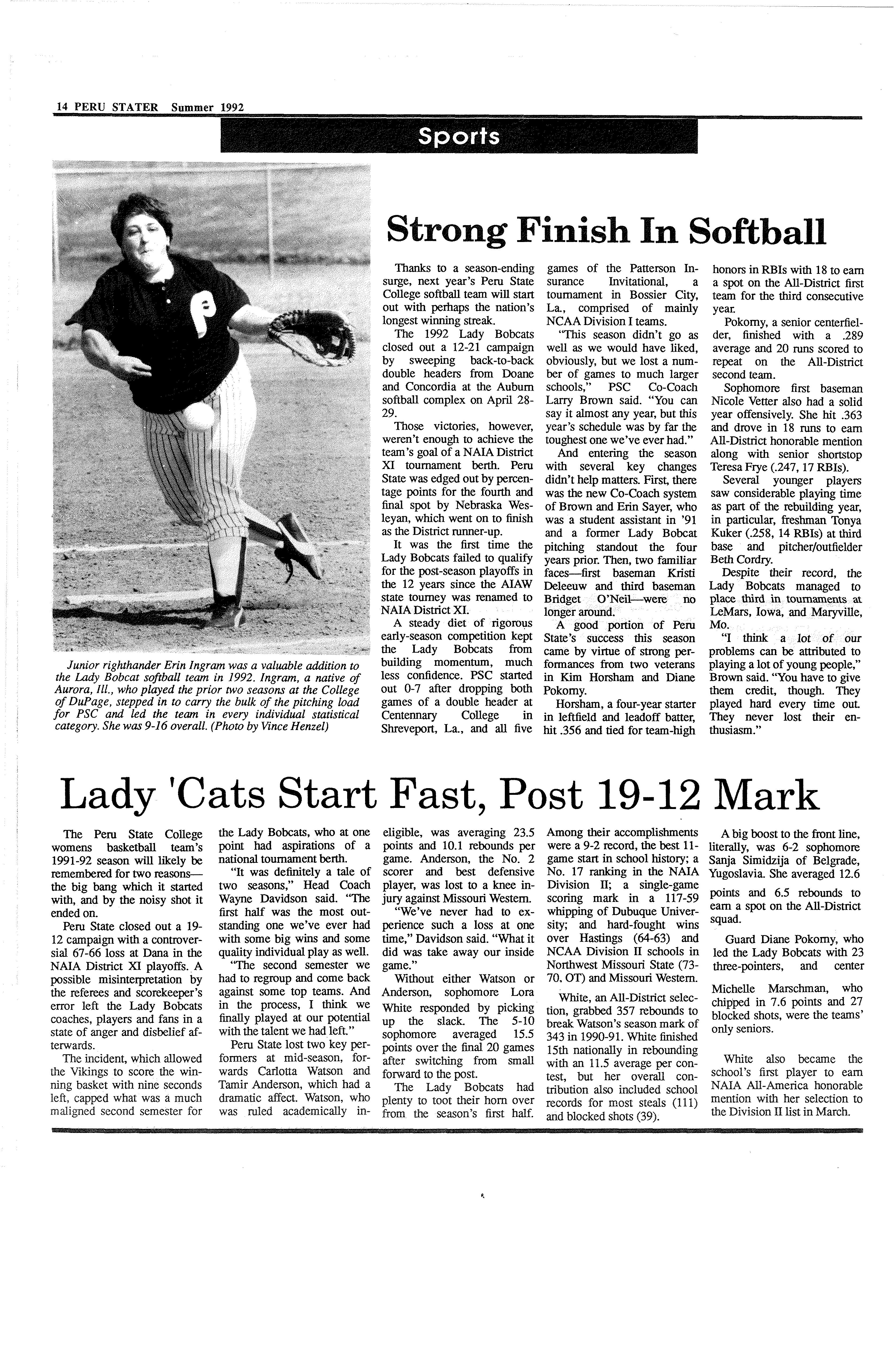 With a strong returning . nucleus and the addition of a promising recruiting class, the Peru State College volleyball team expected improvements in 1992.
