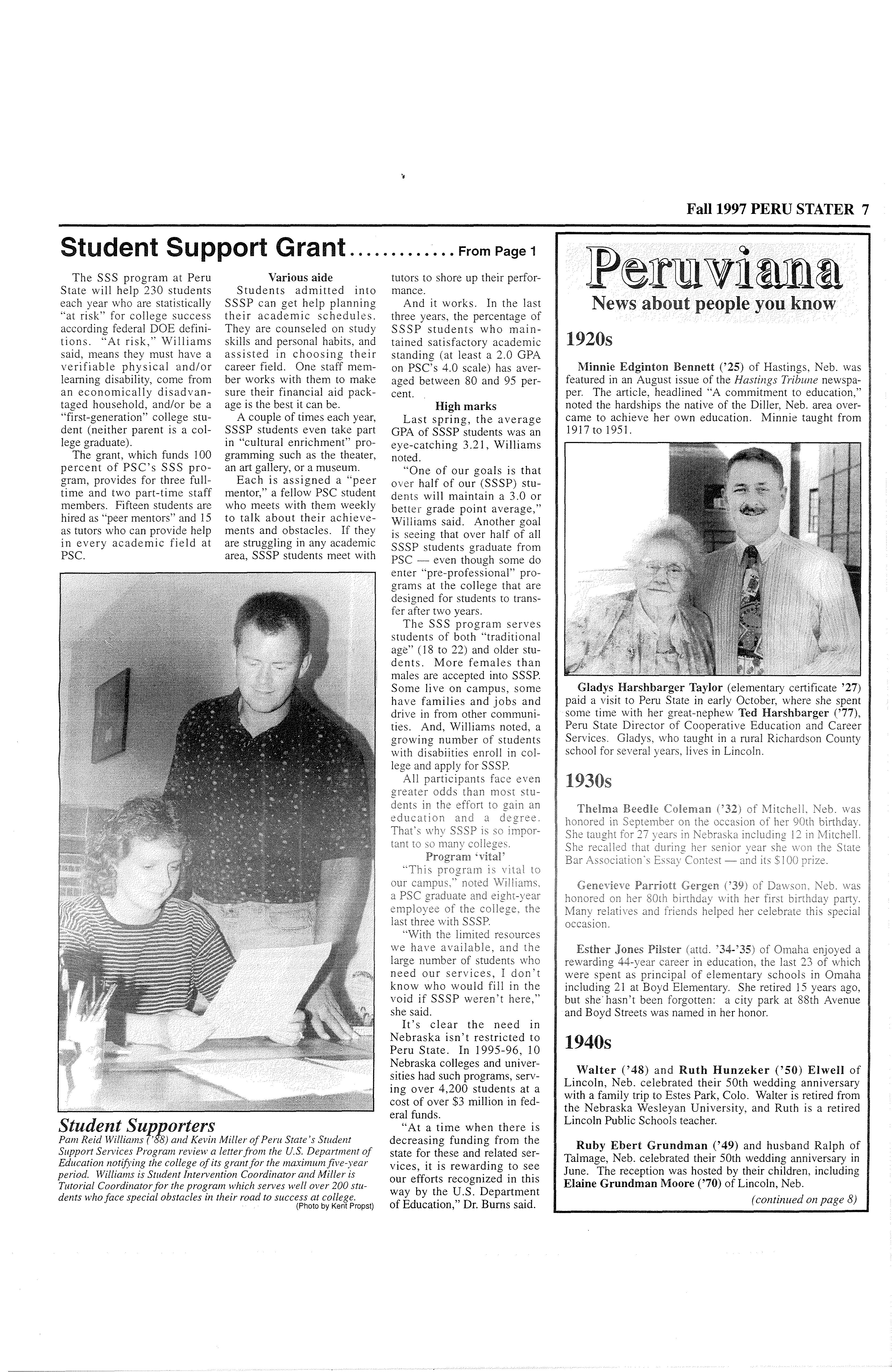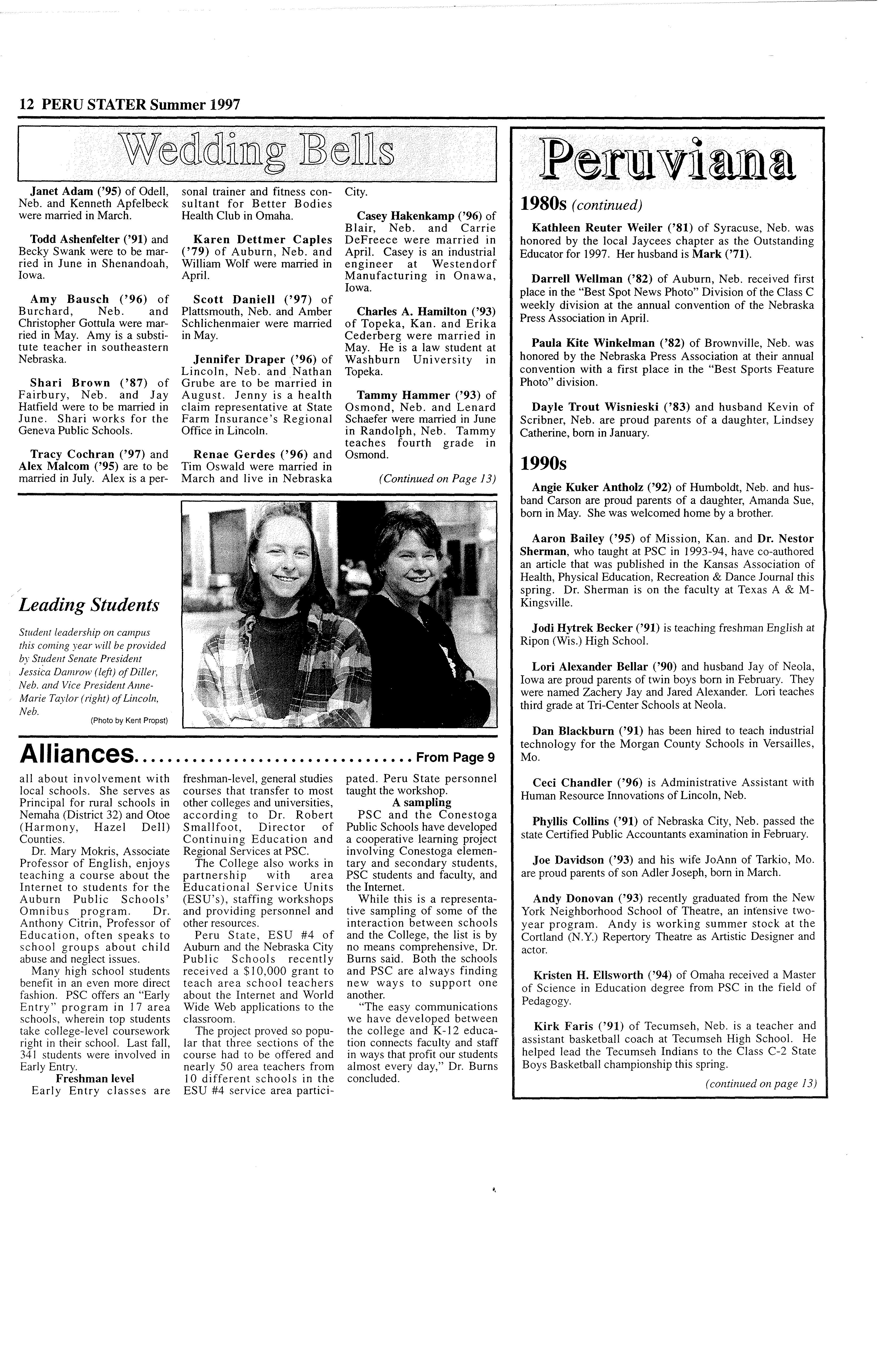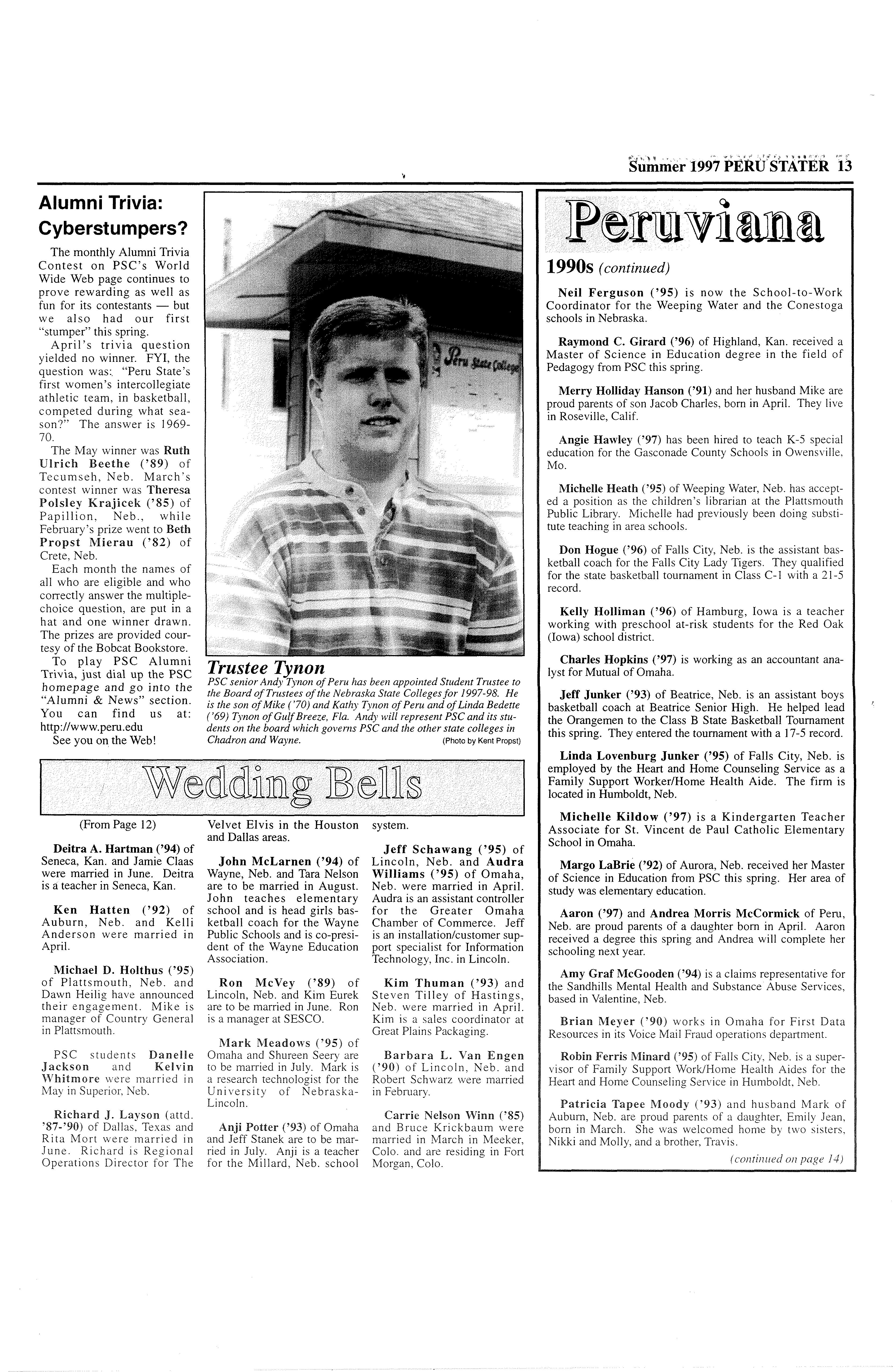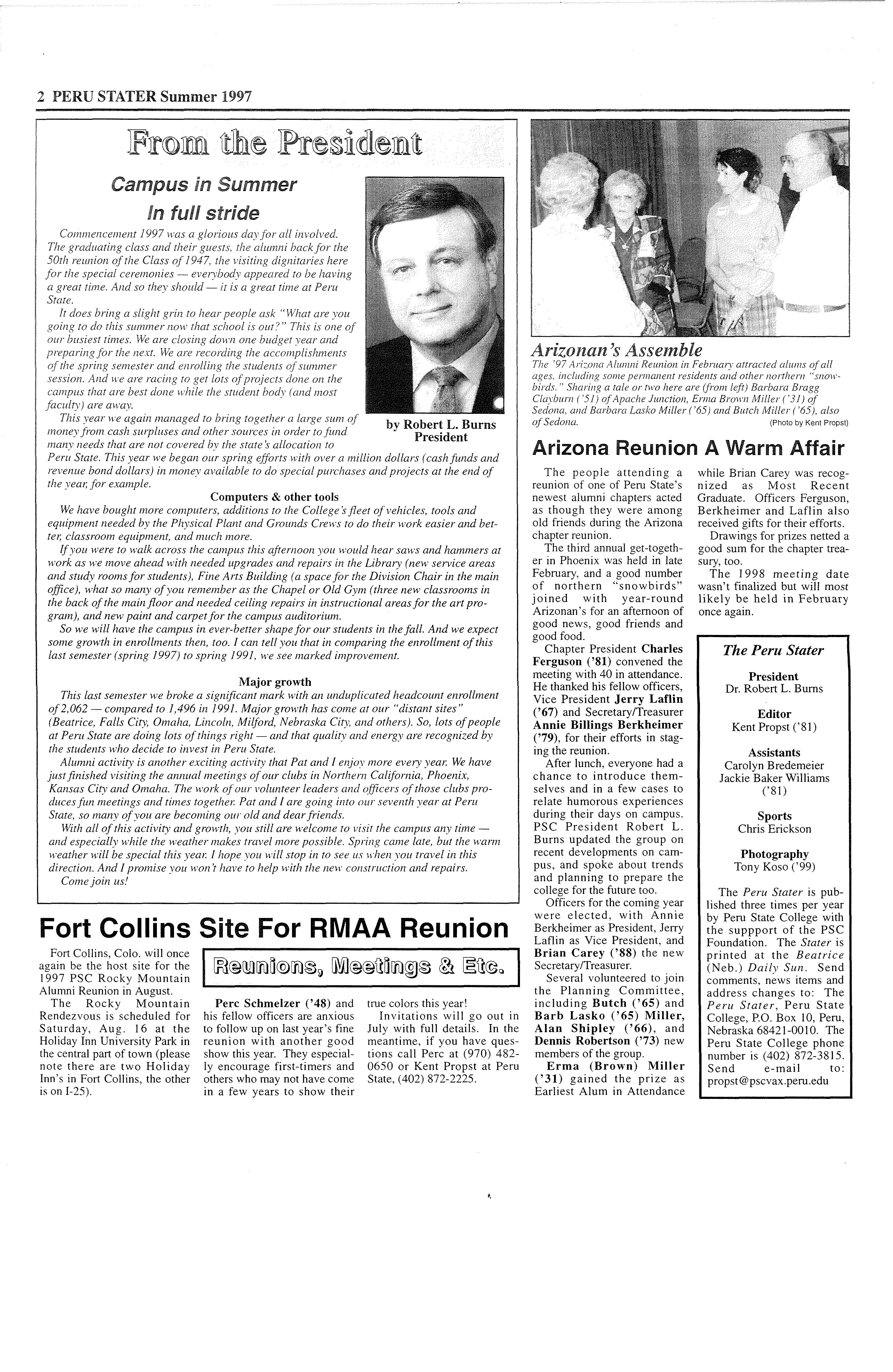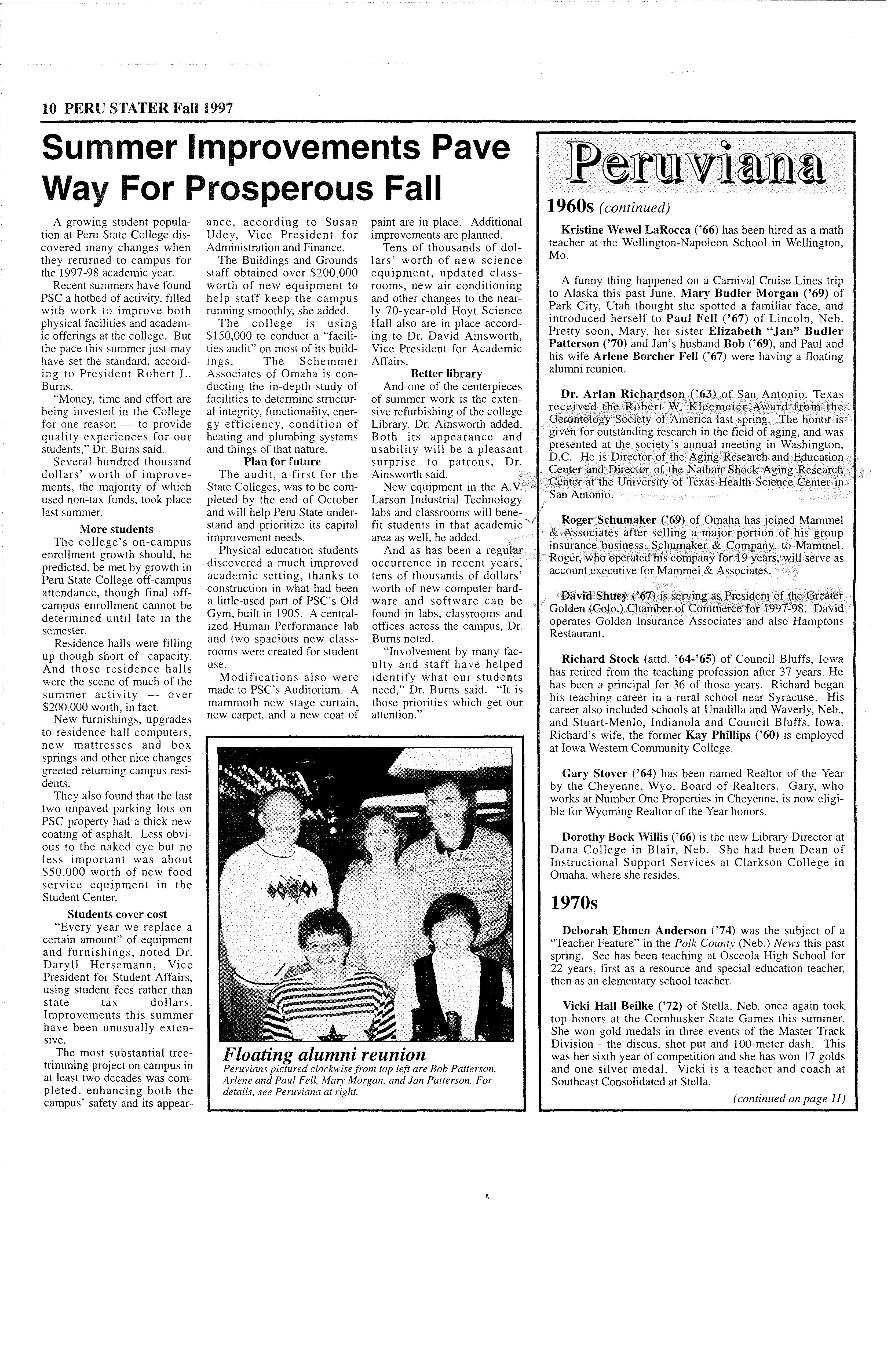 Published by Peru State College "Campus Of A Thousand Oaks" Spring 1997 Vol. 46 No. l