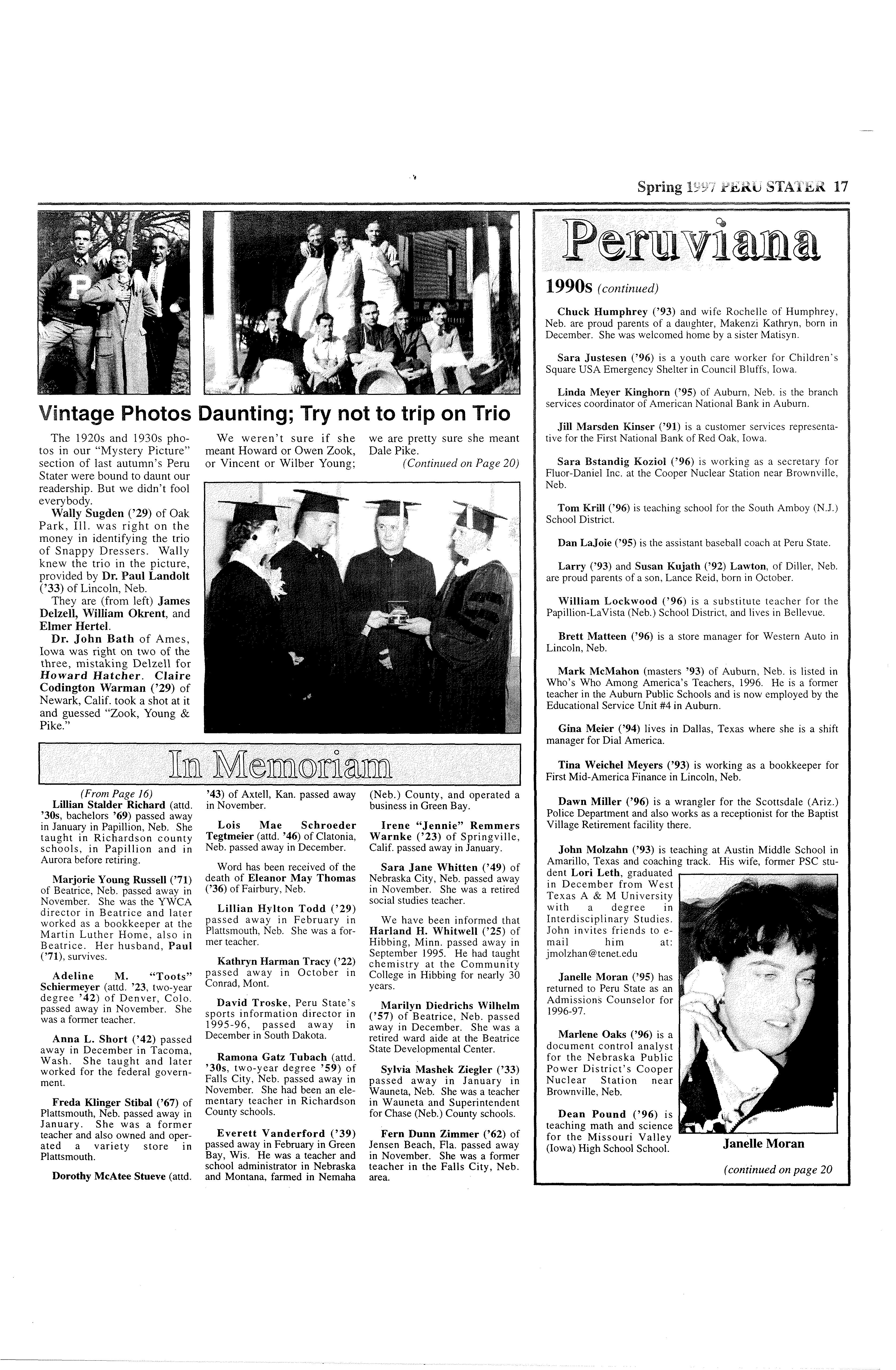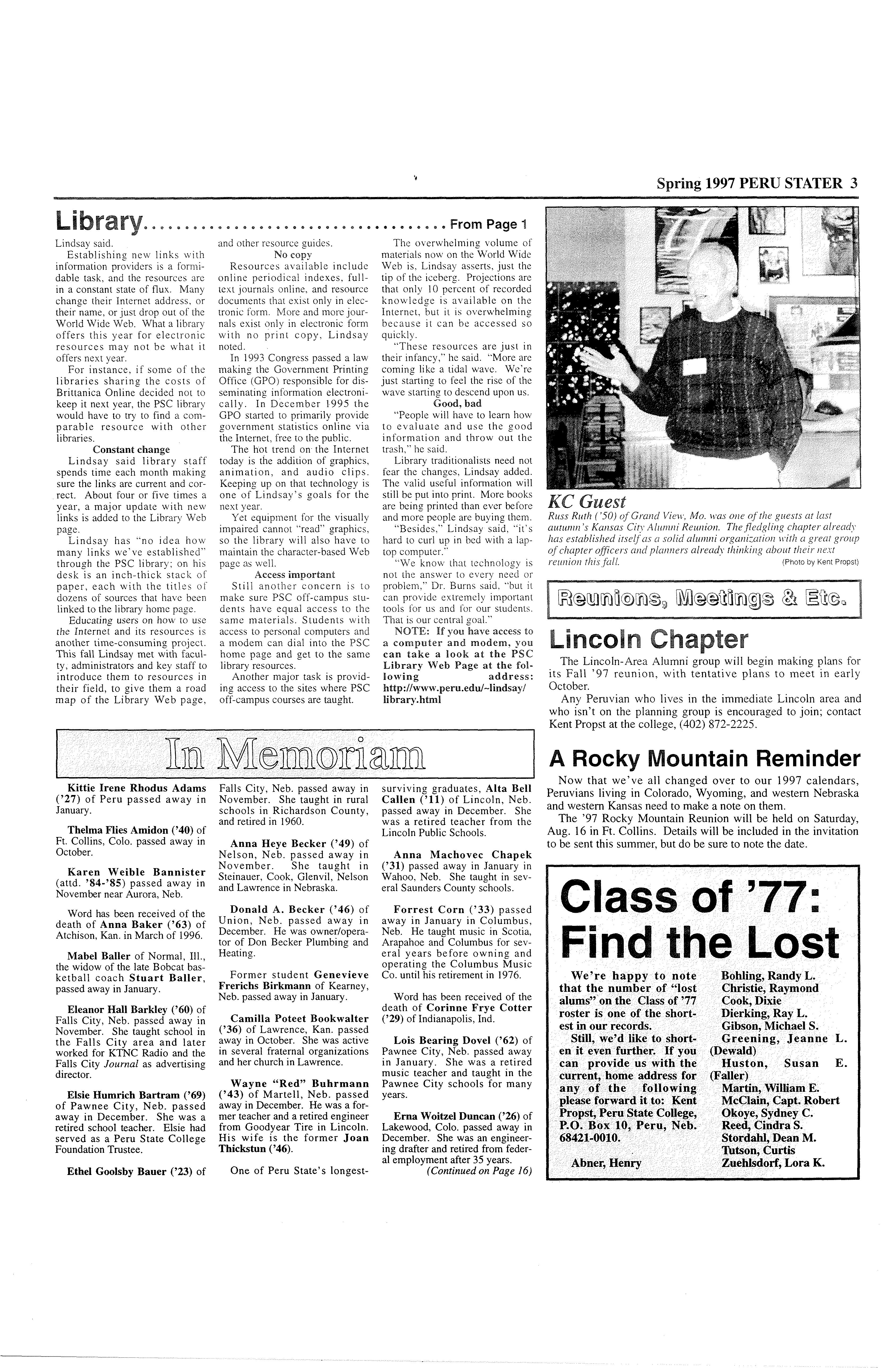 Following is a list of Peru Stater's who recently joined our list of "lost alumni."