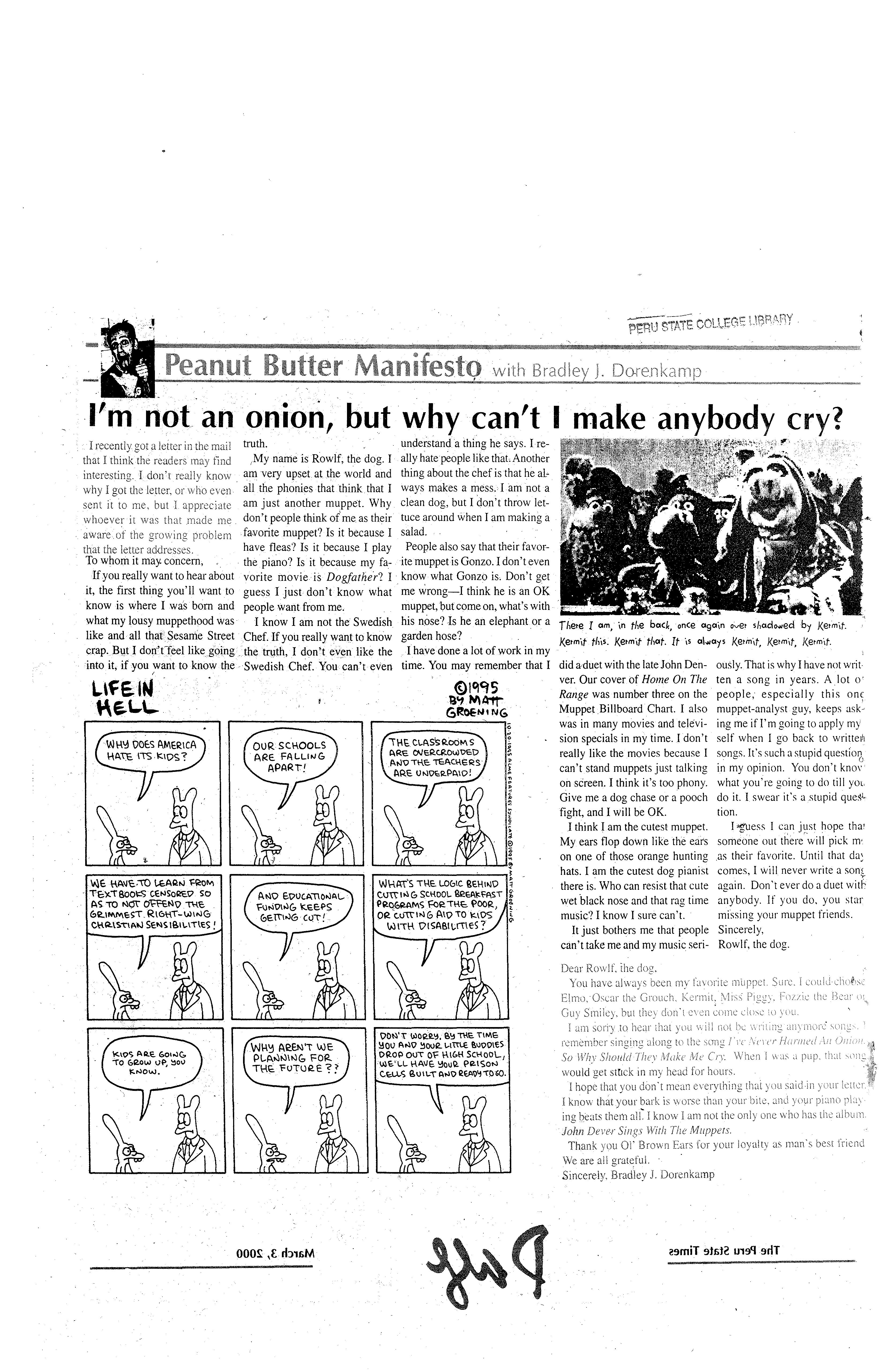 Adail,lS, all the car- · Barker, parents both The strengthof a good news- _.,,, But -while you. wonder exactly: ,how: .much. CAPTAIN. )On to be printed. The reason? from .was un- paper directly from the: GRUNGffit:-takes to-crush-a human being, 48-cubic tons of 'he season-opening football available for comment. editorlal staff. Writers are only breakfast mayhem will come flying out of the chute, int6 ame-between PSC and Doane. We feel that a healthy compe- as good as their editors, and your bowl. all over your tray, spread all over the floor ... 1.dams, with complete lack of titibn between schools is a good spineless editors breed spineless you get the picture. onfidence in h.is own paper, thing, but this attack was far _re_po__rti_·n_g_.-------.
