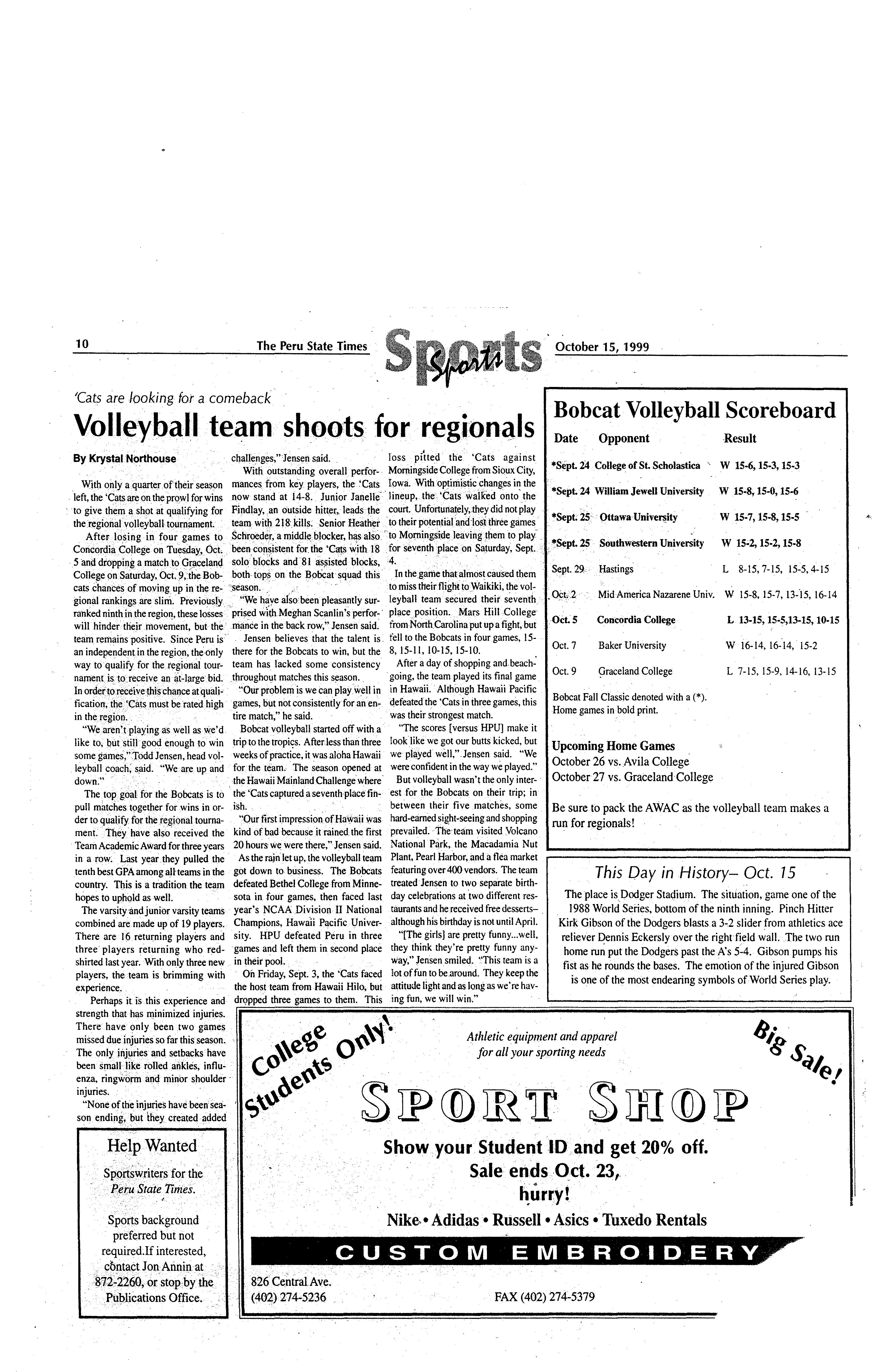 the opportunity to be 21-5 if we won." would have beenoncordia gave a week's notice for / Instead, the Bobcats have made Despite the schedule upheaval, the ilar reasons, although it's still not swift arrangements to host National 'Cats have played consistently in the *'1r why they chose to cancel sched- American University, Rapid ·games. City, SD this Friday and Sunday.