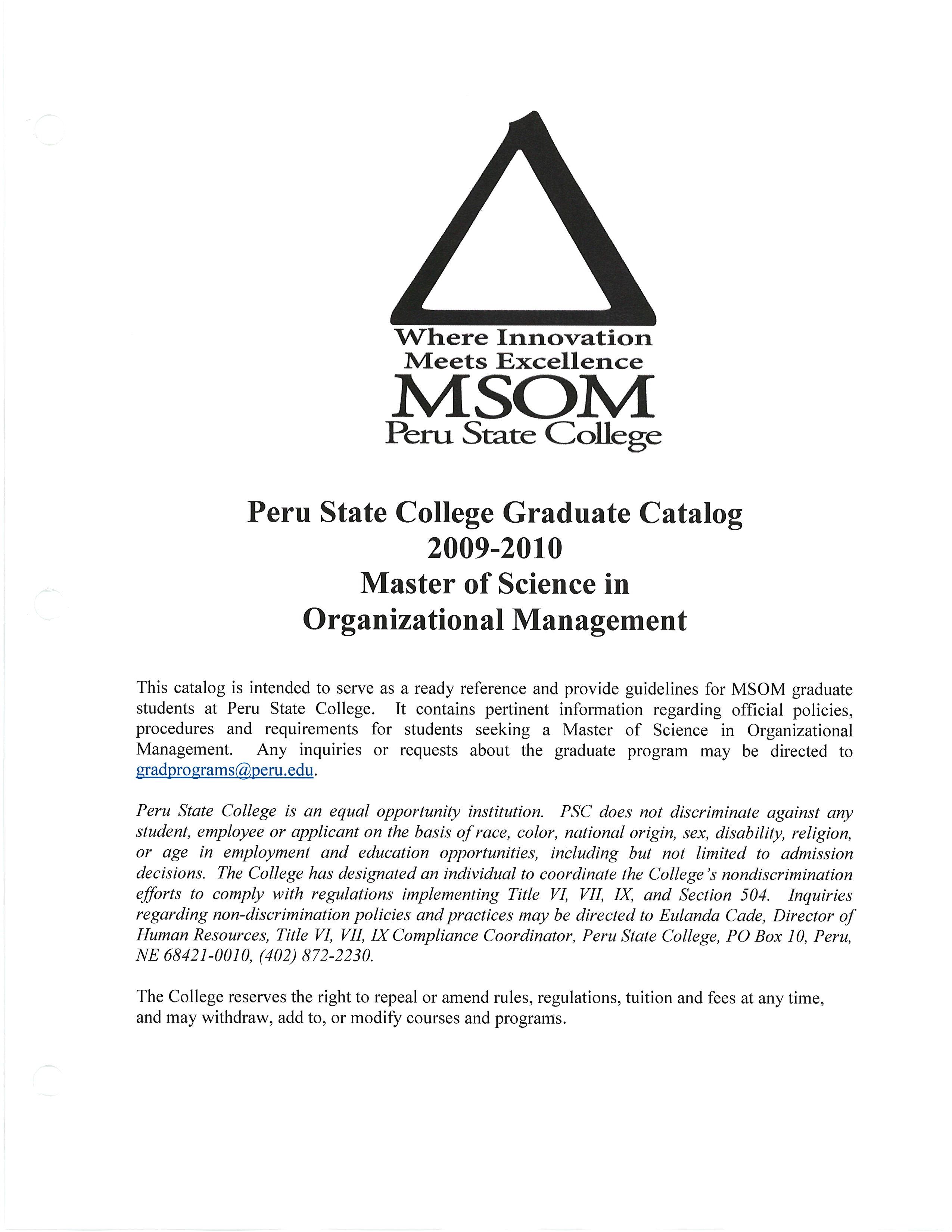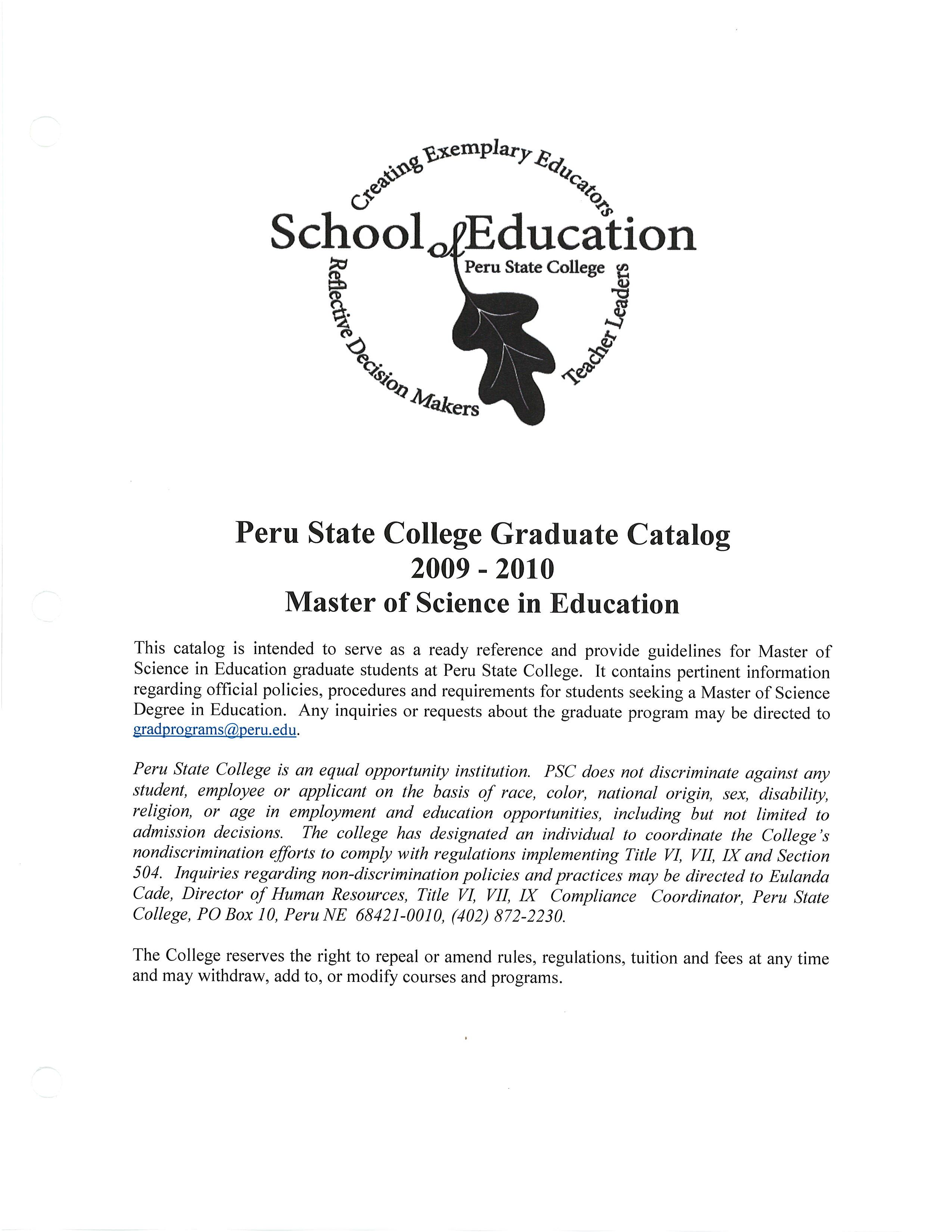 2009-2010 Graduate Catalog of Peru State College (Nebraska)