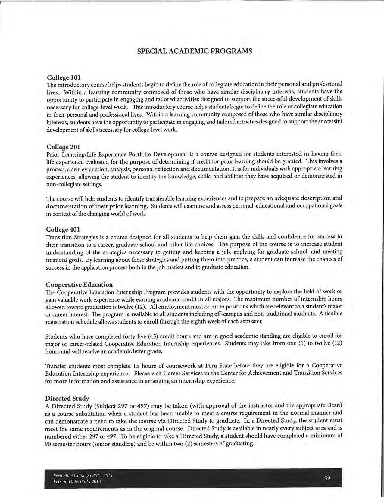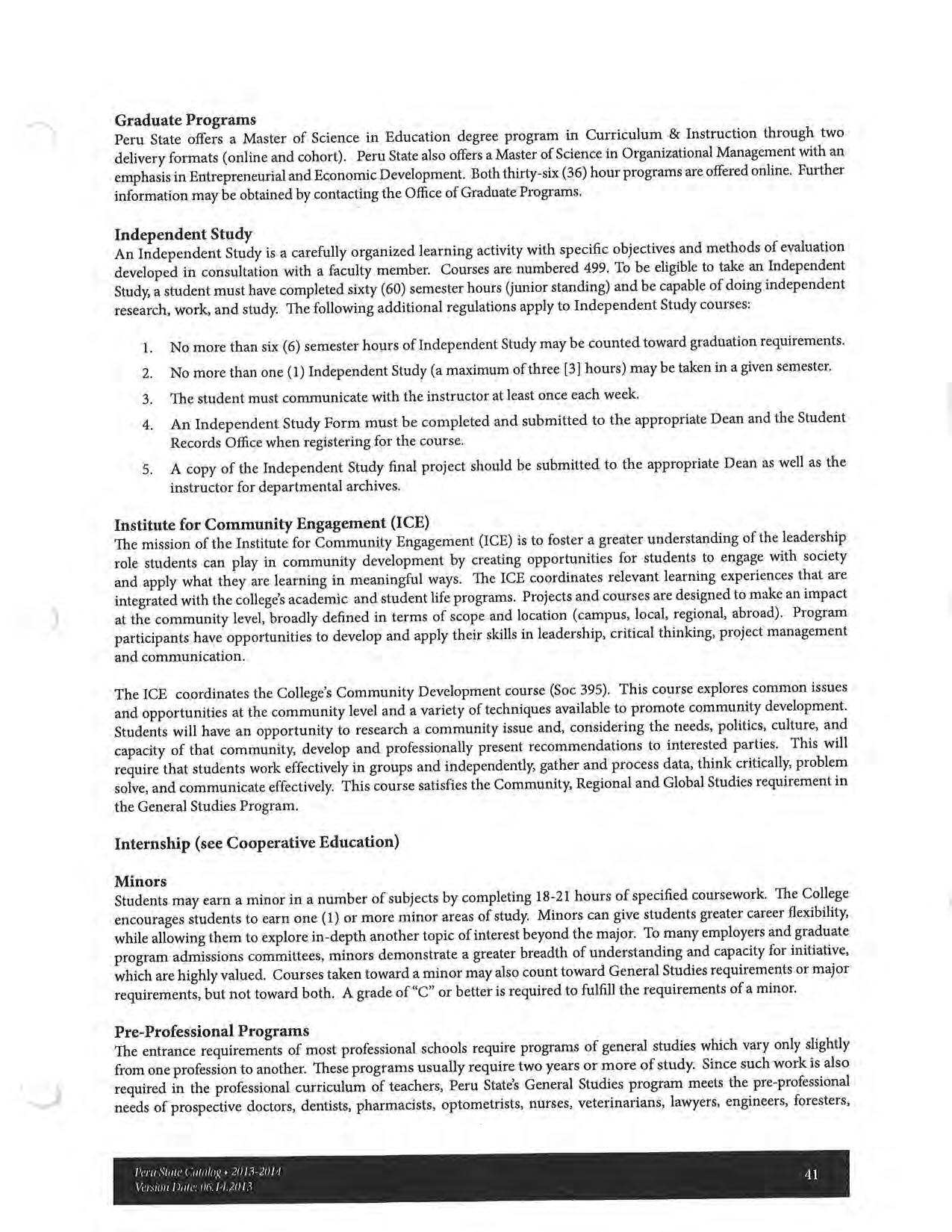 2013-2014 Catalog of Peru State College (Nebraska)