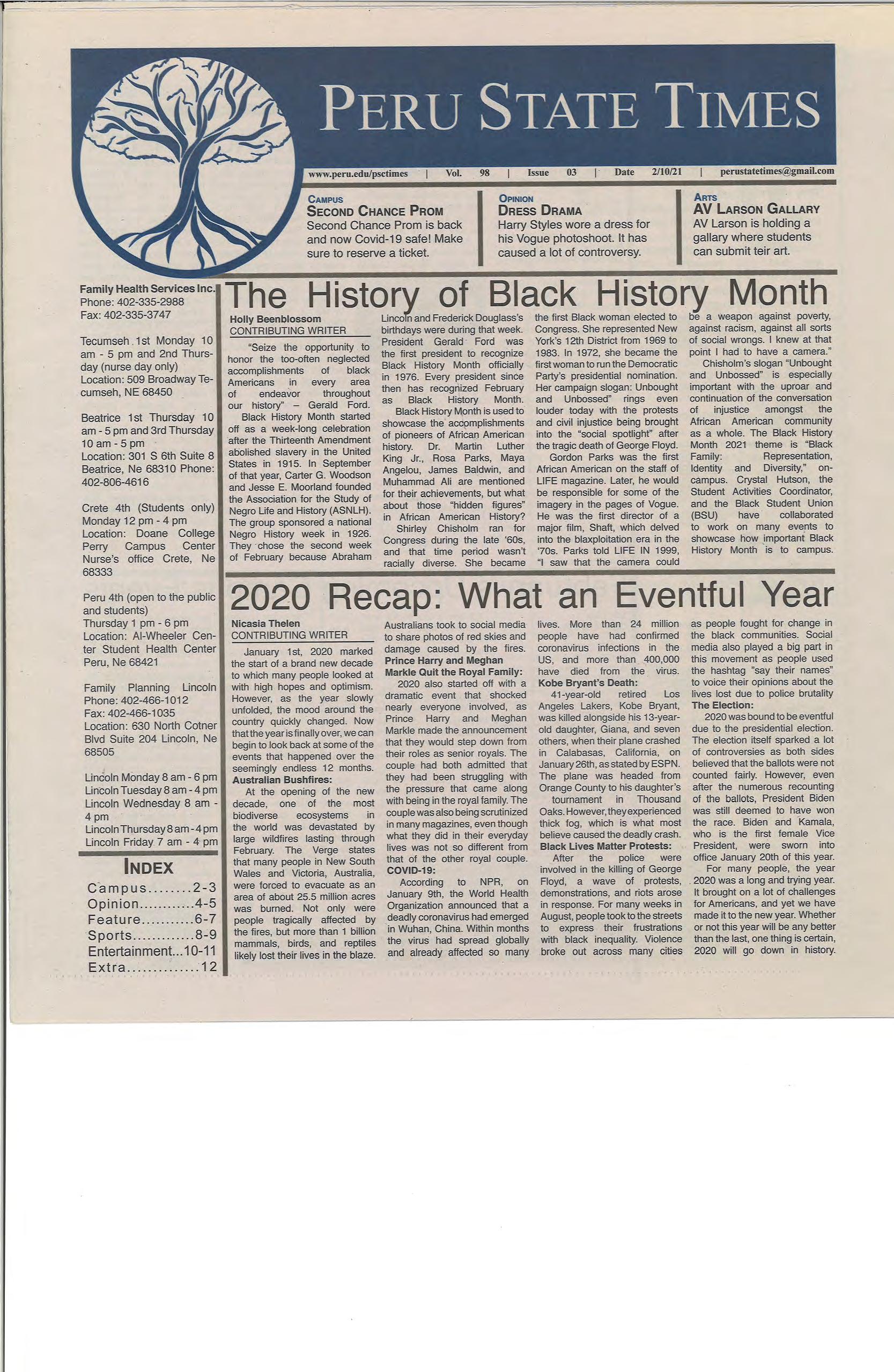 2020-2021 Peru State Times (Peru, NE) - Issues 3-5 by Peru State College Library - Issuu