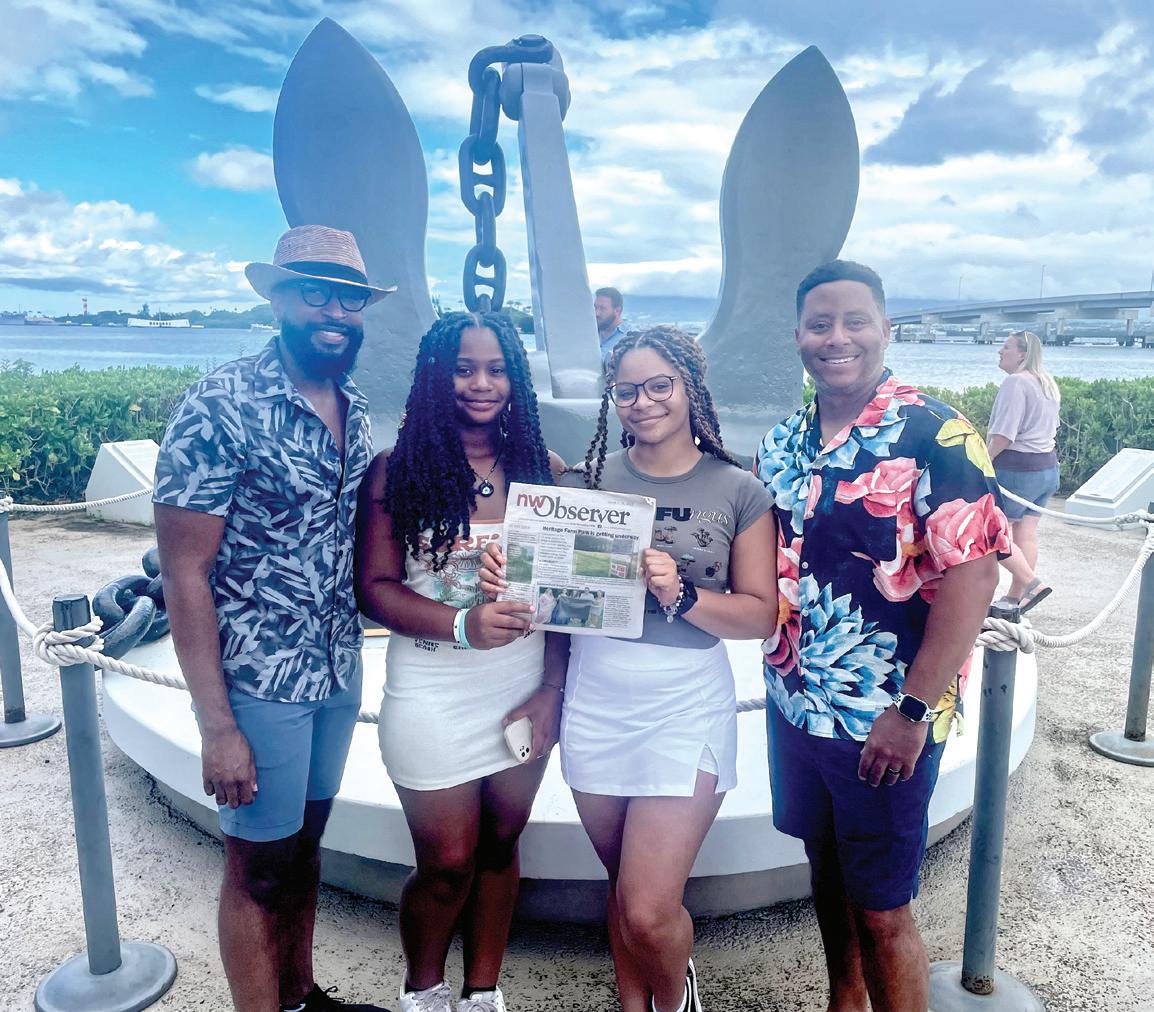 (L-R) Quinton, Ren (12), Raven (17), and Rolondo Enoch of Stokesdale visited the Pearl Harbor National Memorial in Hawaii, where they took the opportunity to learn more about this historic event and caught up on the current history in the making in the Northwest Observer.
