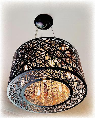 The light fixture in the foyer was a splurge that Kara Winicki felt was well worth the cost. Painting the staircase banister and spindles, relocating a few items and adding a modern, dramatic-looking light fixture transformed the Winickis’ foyer (before, left) into a much more striking gateway to their home (after, below).