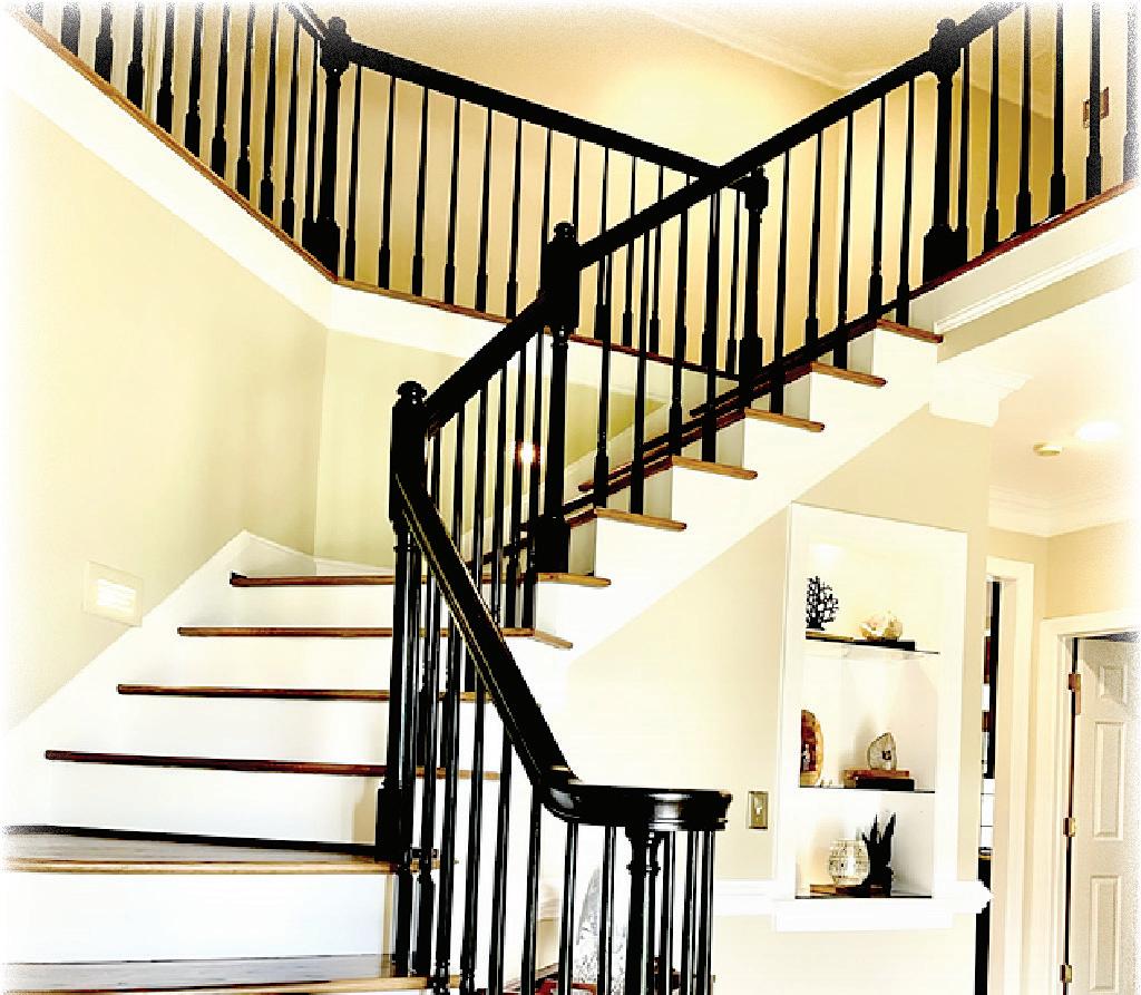 Winicki was hoping to replace the white wooden staircase spindles with ones made of black wrought iron, but then Cottingham told her she had priced a similar job recently and it was going to run about $3,000. That wasn’t going to happen, so they went for the same look without the shocking price tag by painting the spindles and banister black.