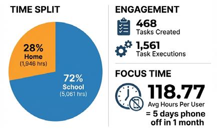 At Thornden School in Hampshire, 59 active pupils generated 7,007 hours of phone-free focus time in just four weeks. 28% of that occurred at home. Thornden has since continued using the app.
