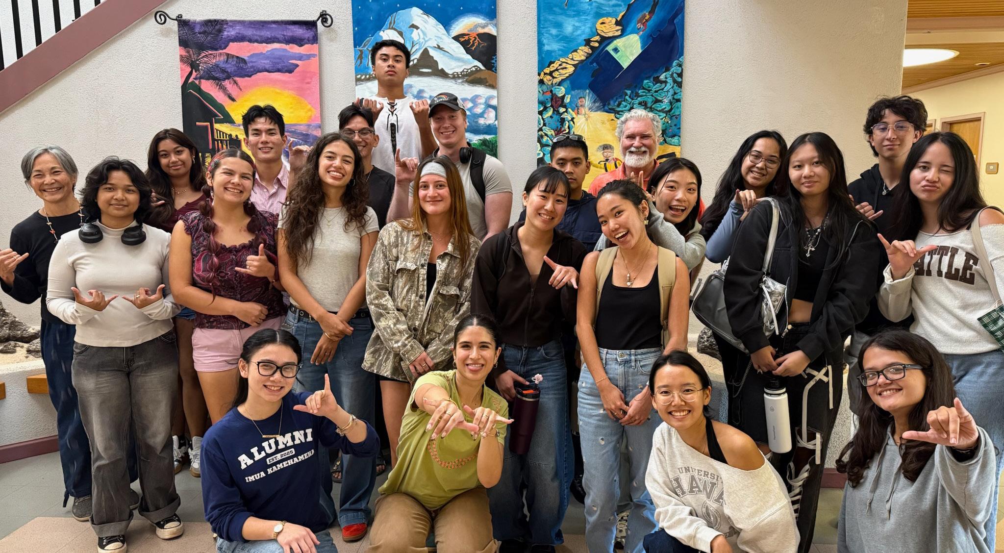 (Right) Dr. Lois Yamauchi, Jeffrey Bock, and student attendees pose for a group photo following University of Hawai‘i at Mānoa’s educational psychology event.