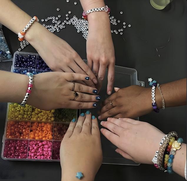 to bond with each other and other members after the ceremony. The officer team provided craft materials for all in attendance to make bracelets together. Additionally, cookies were provided for attendees to snack on during the bracelet-making process. This ended up being an incredibly fun experience where chapter inductees, existing members, and officers learned more about each other, shared jokes, and created a memento of their membership in Psi Chi.