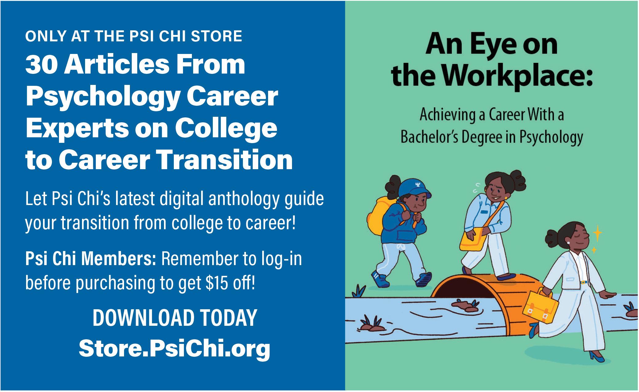 Advertisements that appear in Eye on Psi Chi do not represent endorsement by Psi Chi of the advertiser or the product. Psi Chi neither endorses nor is responsible for the content of third-party promotions.