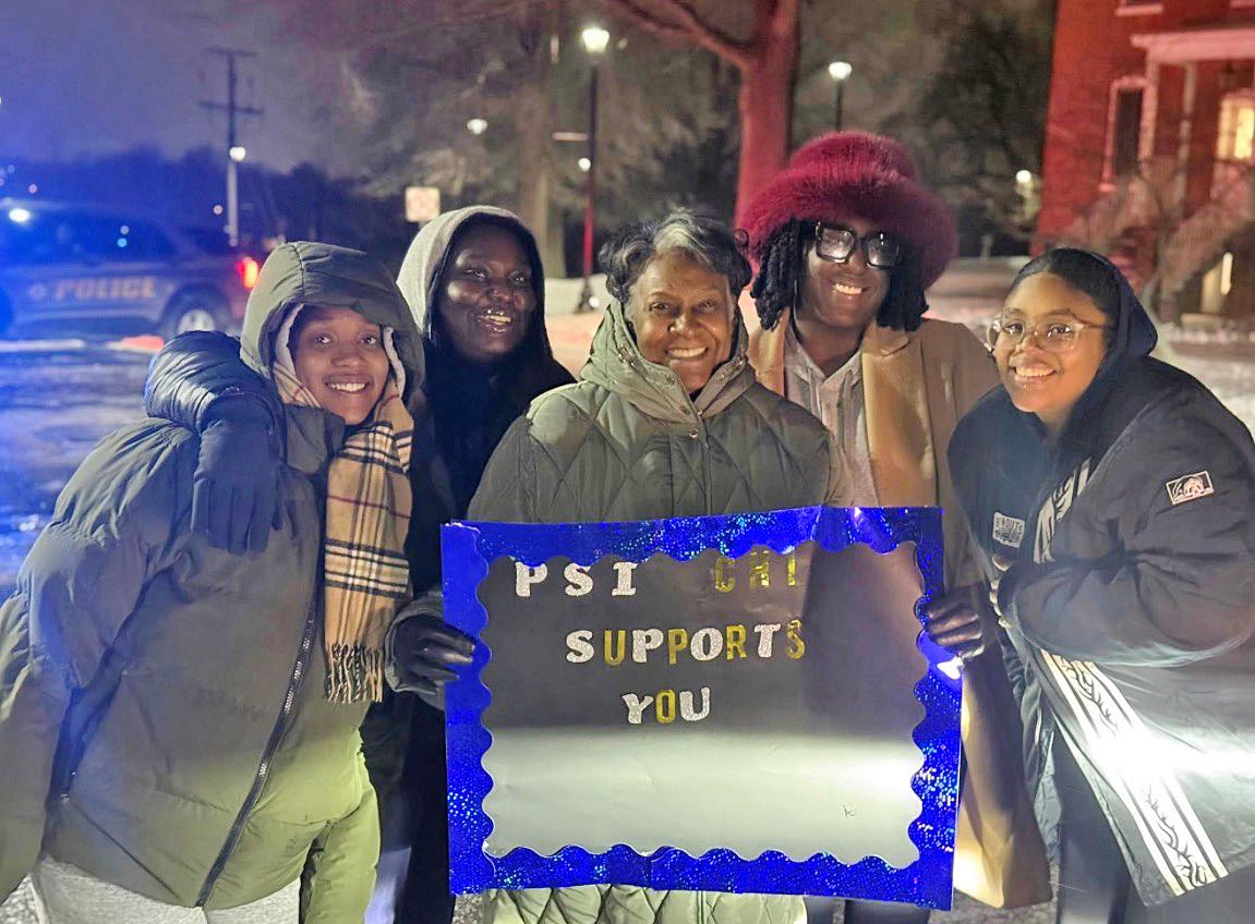 (Left) Members of the Psi Chi Chapter at Virginia State University welcomed the monks participating in the Walking for Peace initiative with flowers and a handmade sign, demonstrating unity, compassion, and the practical application of psychological principles.
