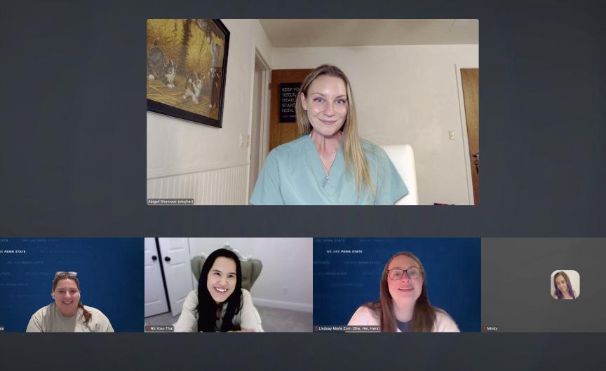 (Top left) The Penn State World Campus Chapter enjoys an engaging conversation with Dr. Abigail Thorndyke Shonrock, assistant director of transplant psychology at the University of Florida.
