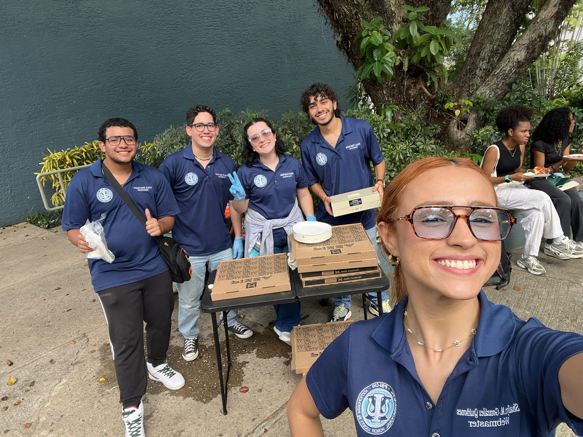 (Left) Members of the University of Puerto Rico at Mayagüez Chapter taking a photo at the “Pórtico,” a historic and symbolic brand of the university.