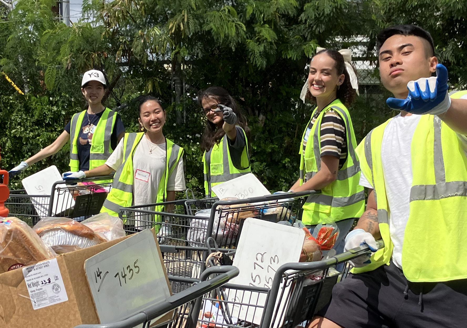 (Below right) University of Hawai‘i at Mānoa Chapter volunteers pose while preparing to load food into recipients’ vehicles at The Pantry by Feeding Hawai’i Together.