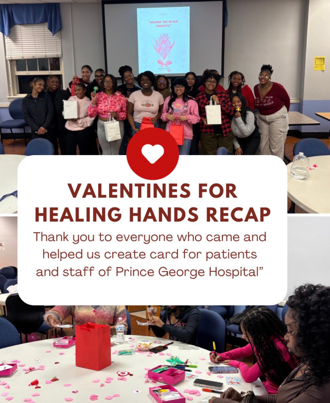 COMMUNITY SERVICE: The chapter hosted a Helping Hands initiative in which members created Valentine’s Day cards for patients at Prince George Hospital in Petersburg, Virginia. Grounded in principles of positive psychology, the activity emphasized the impact of social support and kindness on emotional well-being. By crafting messages of encouragement, members applied psychological knowledge
