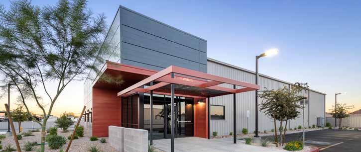 TTR Industrial Park is an innovative business park in the Deer Valley submarket of North Phoenix. Developed by Morton Development, the park is an 11-lot subdivision, delivering individual freestanding buildings for sale. The innovative park is designed with metal buildings that emphasize contemporary architectural design. The goal is to avoid the stigma generally associated with metal building projects while achieving the economic advantage of metal materials. The design vocabulary focuses on clean and crisp architectural surfaces, qualities of metal buildings that maintain their allegiance to costeffective building technology.
