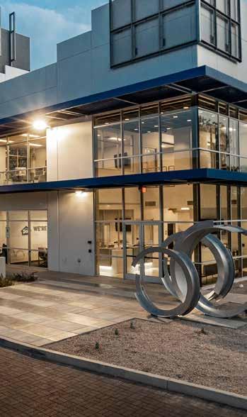Attached to this fully enclosed, single-level garagestyle showroom is a two-story office structure which is a key component to the success of the project. The attached offices allow the sales staff and customers to look out over the the entire inventory from the sales offices. The office portion of the facility is 14,500 SF, and provides executive and sales offices along with space for support staff, conference rooms, and a two-story entry lobby.