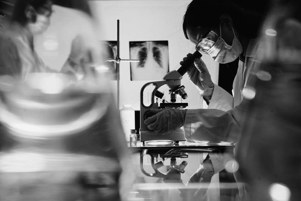 หองทดลองวิทยาศาสตรขนาดใหญที่เต็มไปดวยอุปกรณอิเล็กทรอนิกสหนาตาเหมือนตูขนาดใหญเรียงรายอยูตาม ผนัง อุปกรณสําหรับการตัดตอทางพันธุศาสตรมากมายตั้งอยูบนโตะกันไฟ