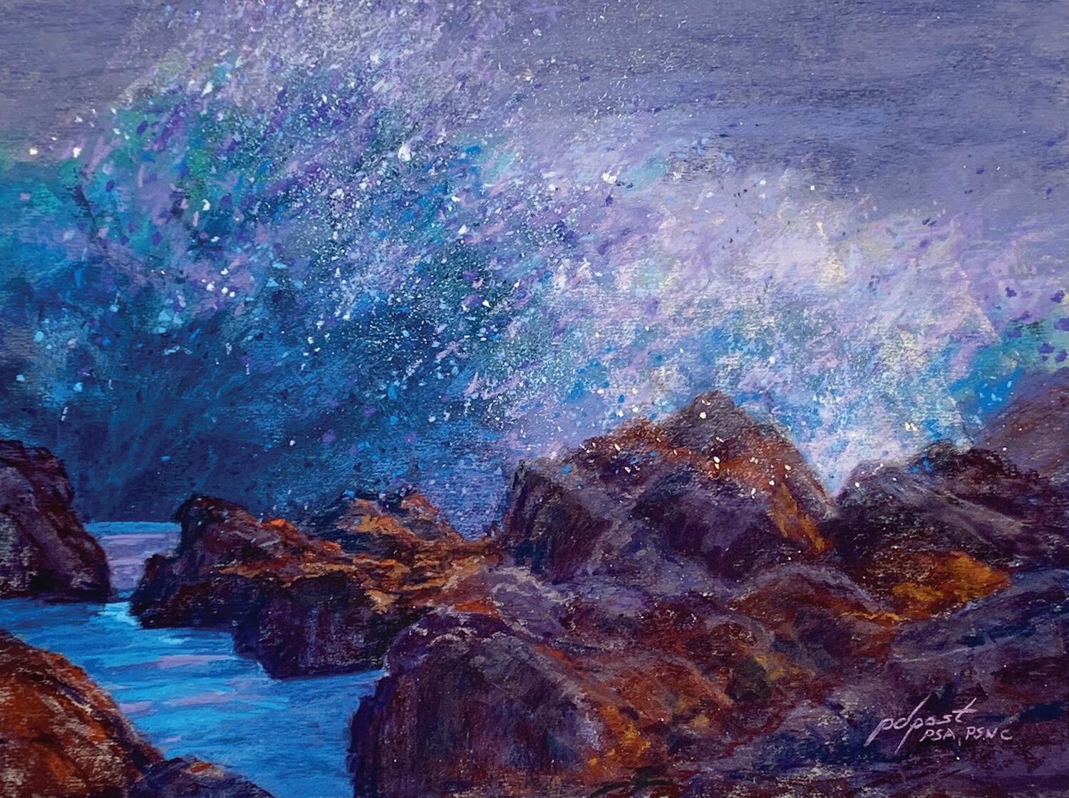 Another tradition in the PSWC is the selection of a Pastel Laureate. This is the highest honor we bestow on a member. It is based on a combination of artistic skill, competitions won, contributions made to the Society, and contributions made to the artistic community at large, such as teaching, authorship, speaking engagements, and so on, and it is voted on by the Board. So far, we have only chosen eight Pastel Laureates. This year we chose our ninth, Dug Waggoner. He is a talented artist, to be sure, having won dozens of awards in various competitions (including, but not limited to the PSWC’s). He has taught, judged, volunteered, written for the Magazine, and has managed our MOOS show for years. He is the resident graphic artist, creating and tracking all our print and social media art, as well as designing art for our shows, and our presence at the IAPS convention. Many hats, not nearly enough thank-yous to cover what he does. Congratulations, Dug!