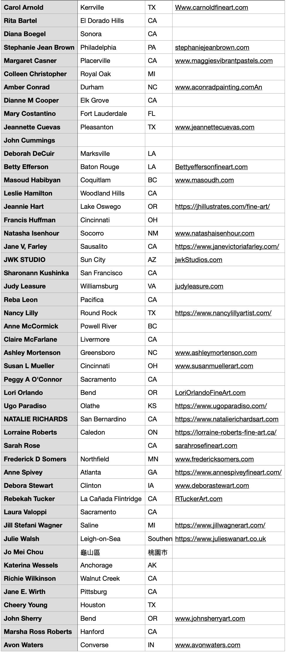 If you are looking for a workshop to take or are a pastel teacher looking to teach a workshop, contact us! Jean Myers is our workshop coordinator, and she is awesome. We are currently offering in-person and ZOOM classes with some of the best pastel teachers on the planet.