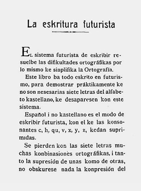 Y como guinda en el pastel de su trabajo, Agus tina escribió su Idearium Futurismo en el que explicaba unas nuevas normas ortográficas de economía léxica que facilitaría la escritura a to dos los que no tuviesen destreza ni corrección escribiendo para hacerlos sentir más cerca nos a la lengua que hablaban y escribían. Este lenguaje futurista es el predecesor al lenguaje que usábamos para mandar sms con el móvil cuando nos costaba el dinero cada letra de más que pusiéramos y teníamos que simplificar las palabras. Este trabajo de Agustina es una gran revelación de la mentalidad de esta mujer tan avanzada para su época y tan empática con los que la rodeaban.