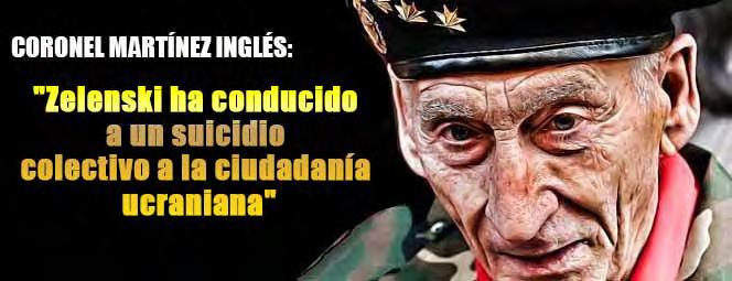 tuando con arreglo a ellas y echando mano de su profundo analfabetismo funcional en ma teria castrense, tomo de inmediato y de facto (sin duda de jure la tiene pero meramente pro tocolaria) la dirección estratégica de sus FAS de una manera alocada, ayuna de cualquier estudio o previsión adecuada de sus Estados Mayores, en plan chulesco, retador, y tratando continuamente de humillar, subvalorar, ningu near e insultar al formidable enemigo que te nía enfrente y que él solito se había creado al airear a los cuatro vientos, desde el año 2008, su disposición a integrarse en la OTAN y hasta de servir de plataforma infernal para hipotéti cos despliegues de sus armas nucleares. No contento con eso, este demencial diri gente político ucraniano se permitió el lujo de declarar, con más moral que el Alcoyano e imitando a los gerifaltes revolucionarios fran ceses con su patriótica “nación en armas”, la ley marcial en su desgraciado país obligando a prestar servicio en el Ejército a todos los ciu dadanos varones de 18 a 60 años. ¡Casi nada! ¡Todos a una contra la delincuente y genocida Rusia!