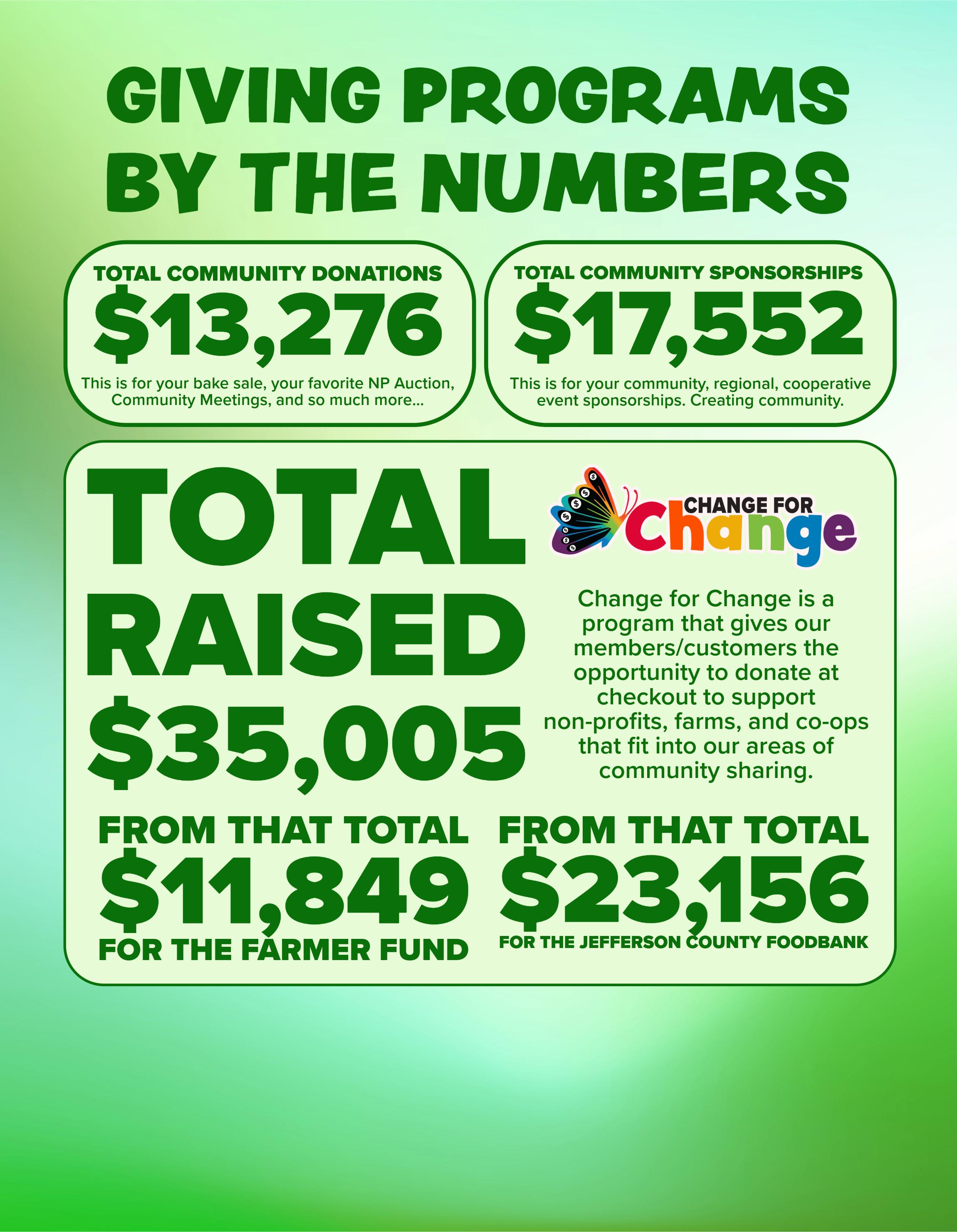 Now we are collecting donations from you, our generous members, to go directly to those producers looking to try something new; to buy a new tool to help them be more effective with their limited resources, or be more regenerative farmers, for instance. Last year, we raised $2,500, but this year, with the new donation button at the check stands, it is closer to $10,000 every month—wow, that’s impressive! And generous. It truly reflects the bounty of living in such an amazing place. Thank you!