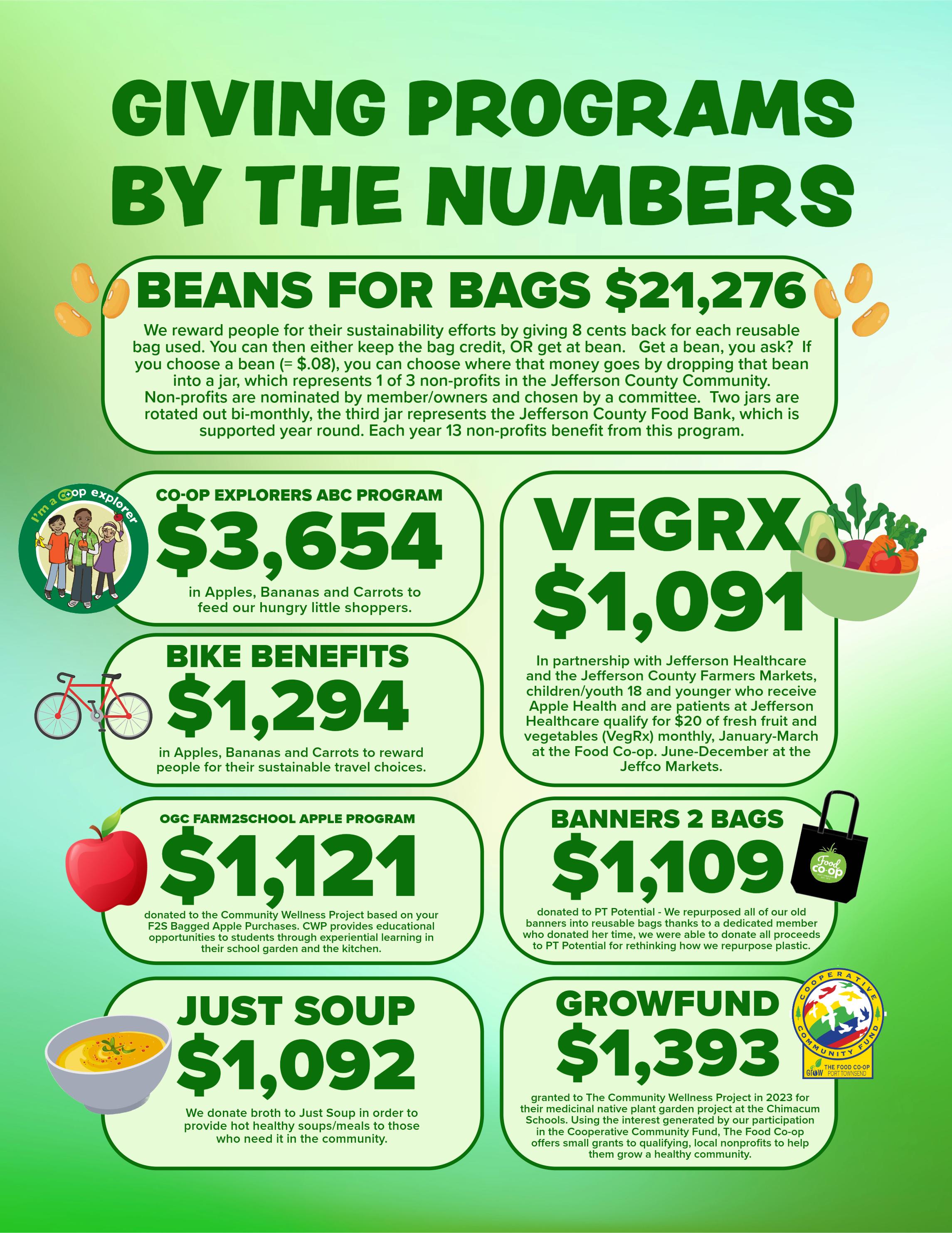 This distribution is an example of “strength through cooperation” with our mission front and center --when we balance between giving back to our member-owners and investing in the future of the co-op. In a cooperatively owned business, member equity provides the capital we need to support our business. Look for details in an email or letter towards the end of June, along with a formal announcement at our Annual General Meeting, June 26th. The dividend will be available at the store beginning July 1st, 2024.